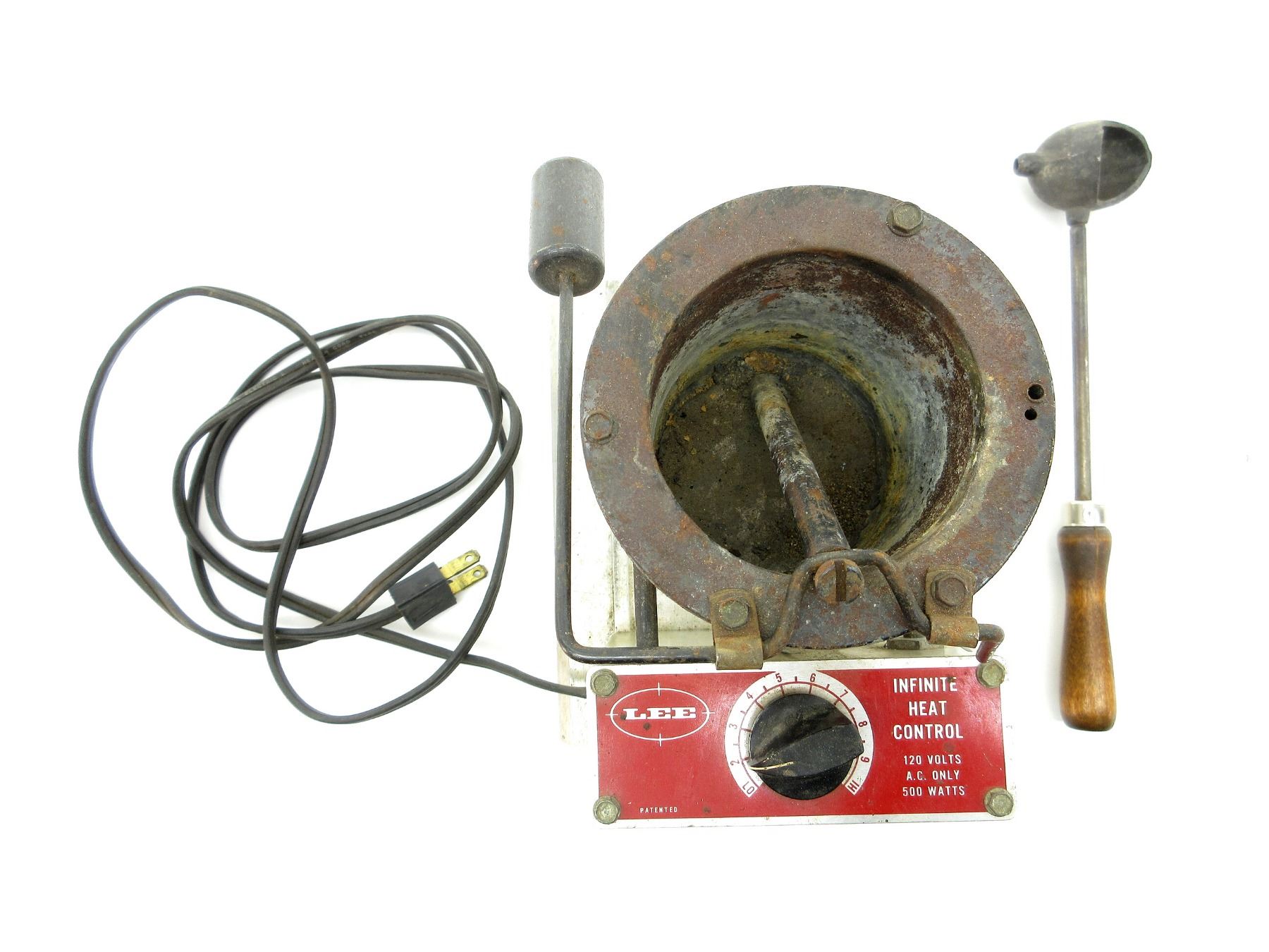 LOT INCLUDES; (1) LEE INFINITE HEAT CONTROL MELTING POT & (1) LEAD POURING LADLE. SEE PHOTOS.