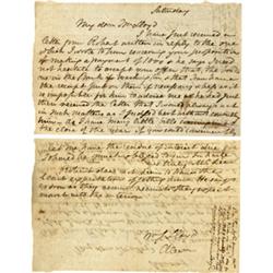 <b>592. MARY CUSTIS LEE</b> (1806 - 1873) Wife of Confederate Lt. Gen. Robert E. Lee and the only daughter of George Washington Parke Custis, grandson of Martha Washington. A.L.S. 2pp. oblong 8vo., [n.p., 1848], in part: <i>"...I have just received a letter from Robert...concerning your proposition of making a payment...he says I need not hesitate to accept your offer...Robert does not deem to have the least expectation of getting home. He says as soon as they receive recruits - they expect to march into the interior...</i>". Very good.<b> $200-300</b>