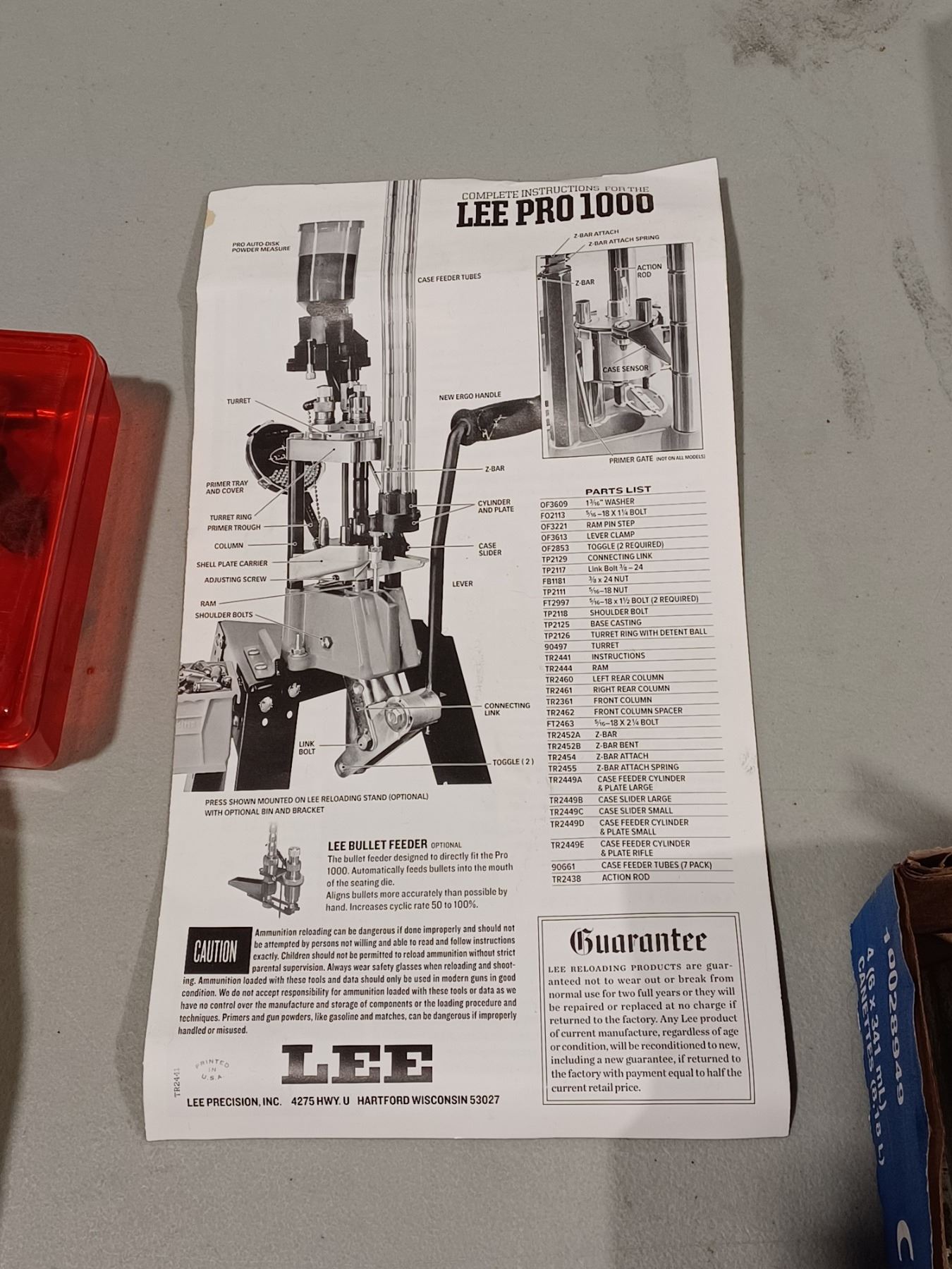 LEE PRO 1000 PROGRESSIVE RIFLE PRESS WITH LOTS OF ACCESSORIES