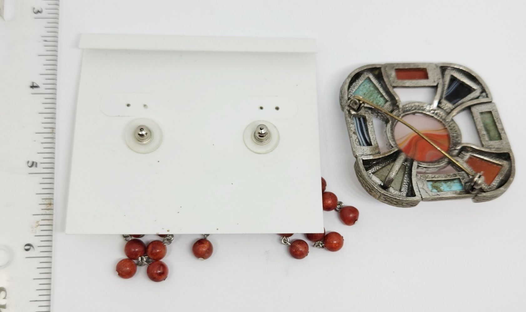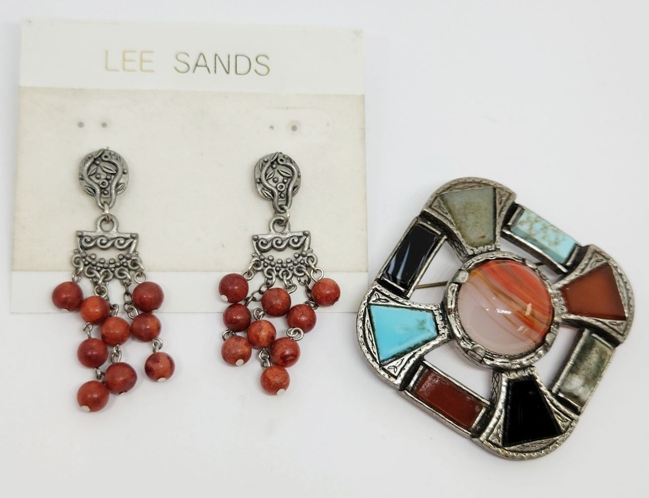 LEE SANDS EARRING AND LARGE STONE BROOCH