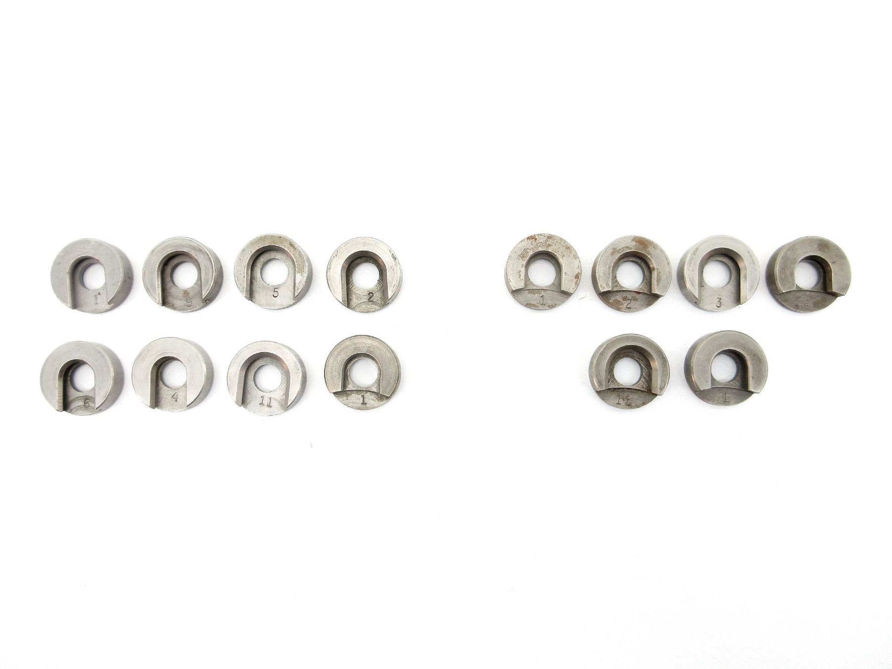 LOT INCLUDES; (8) SHELL HOLDERS IN A SET, FOUR ARE MISSING, SET INCLUDES: #1, #2, #4, #5, #6, #9, #11, ANOTHER #1 & (6) SHELL HOLDERS IN A SET, SIX ARE MISSING, SET INCLUDES: #1, #2, #3, #4, #11 & ANOTHER #1. SEE PHOTOS.