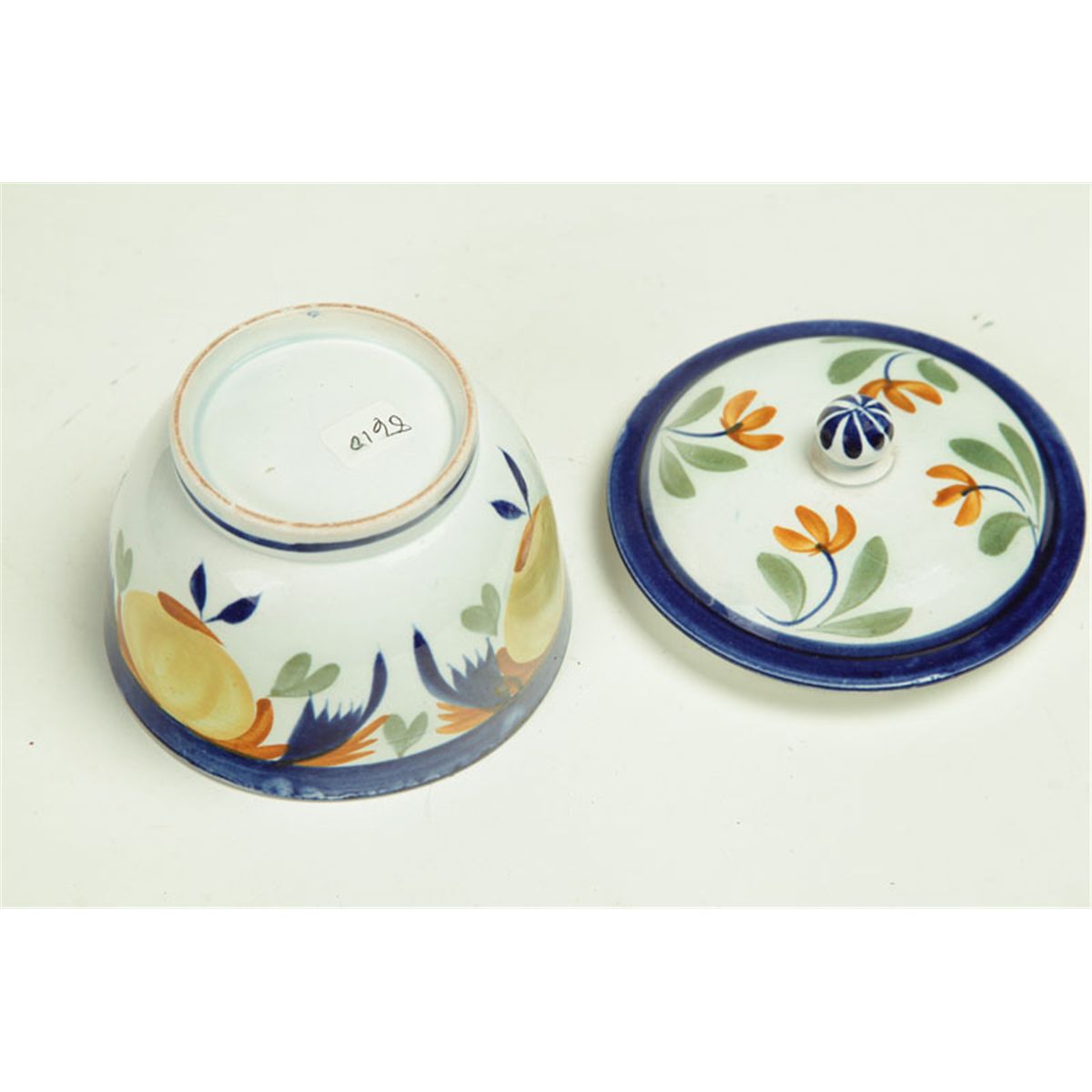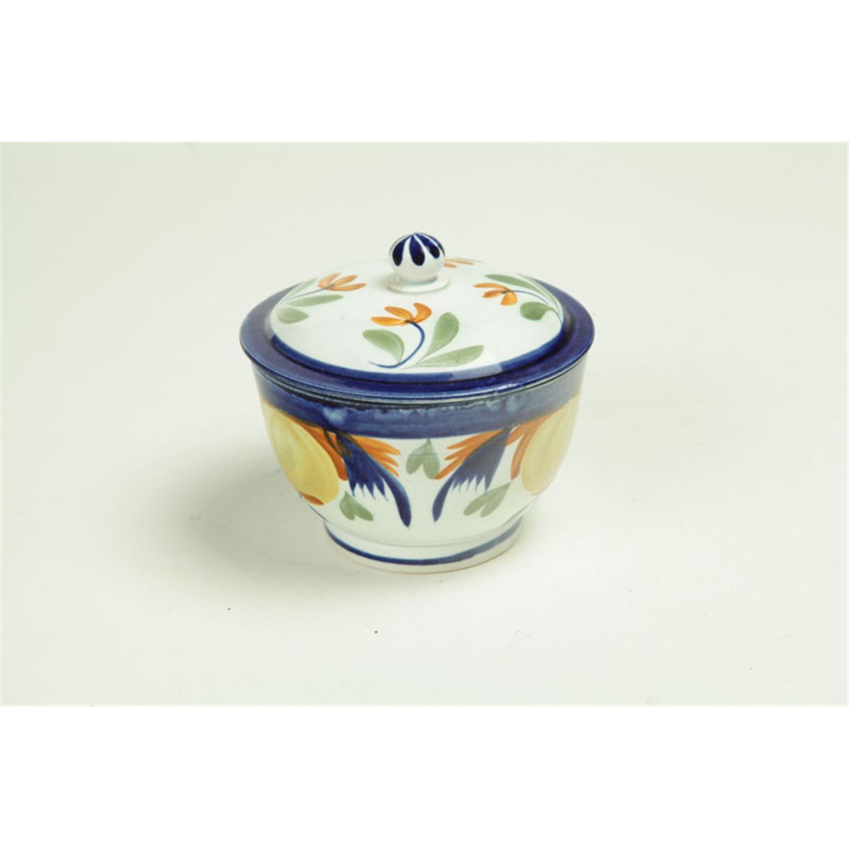 England, early 19th century, pearlware. Round bowl with bold fruit and floral decoration. 4"h.