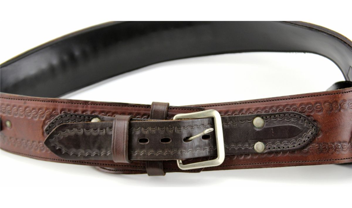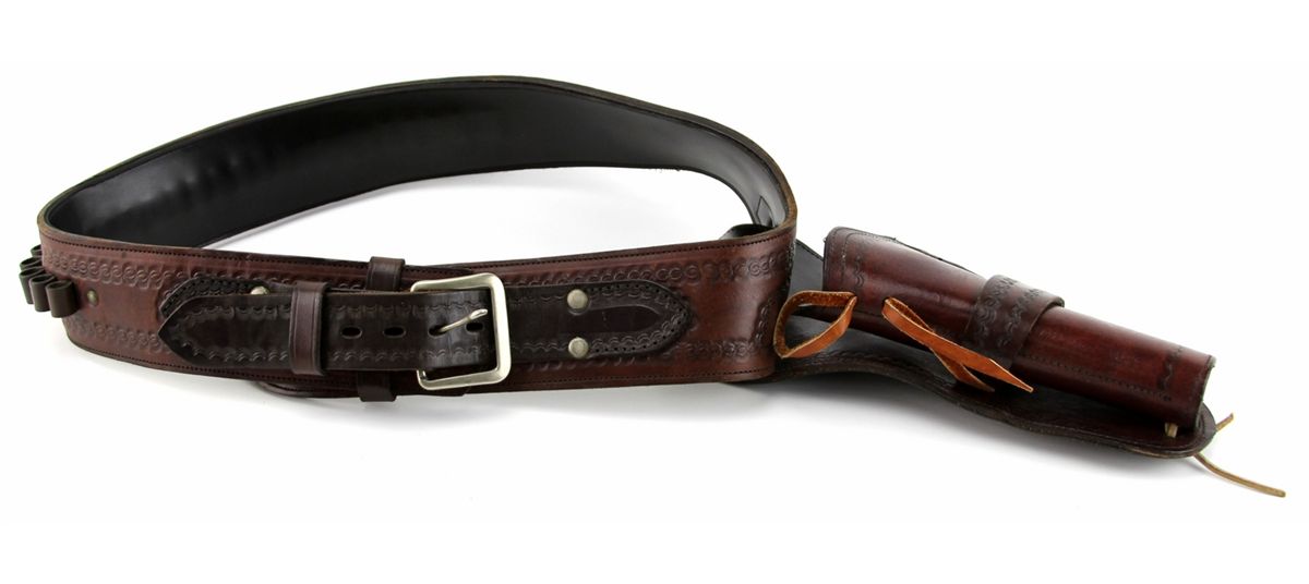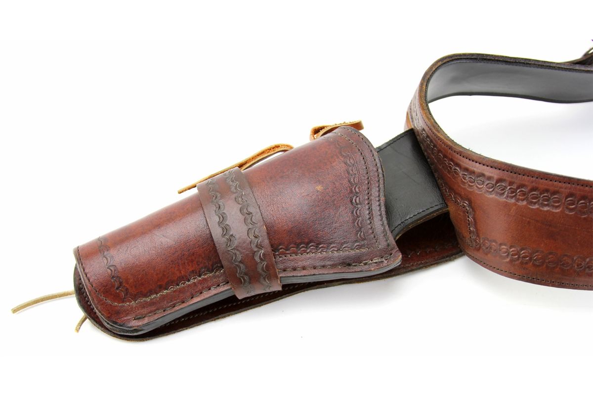 LEFT HANDED BASCADERO HOLSTER RIG SAA 5.5-7.5 INCH Modern made left handed leather bascadero holster rig for Colt SAA style pistols, 5.5 to 7.5 inches. Size 38-42 inch waist, with .38/.357 cartridge loops. No makers marks. Ver good condition. Condition: