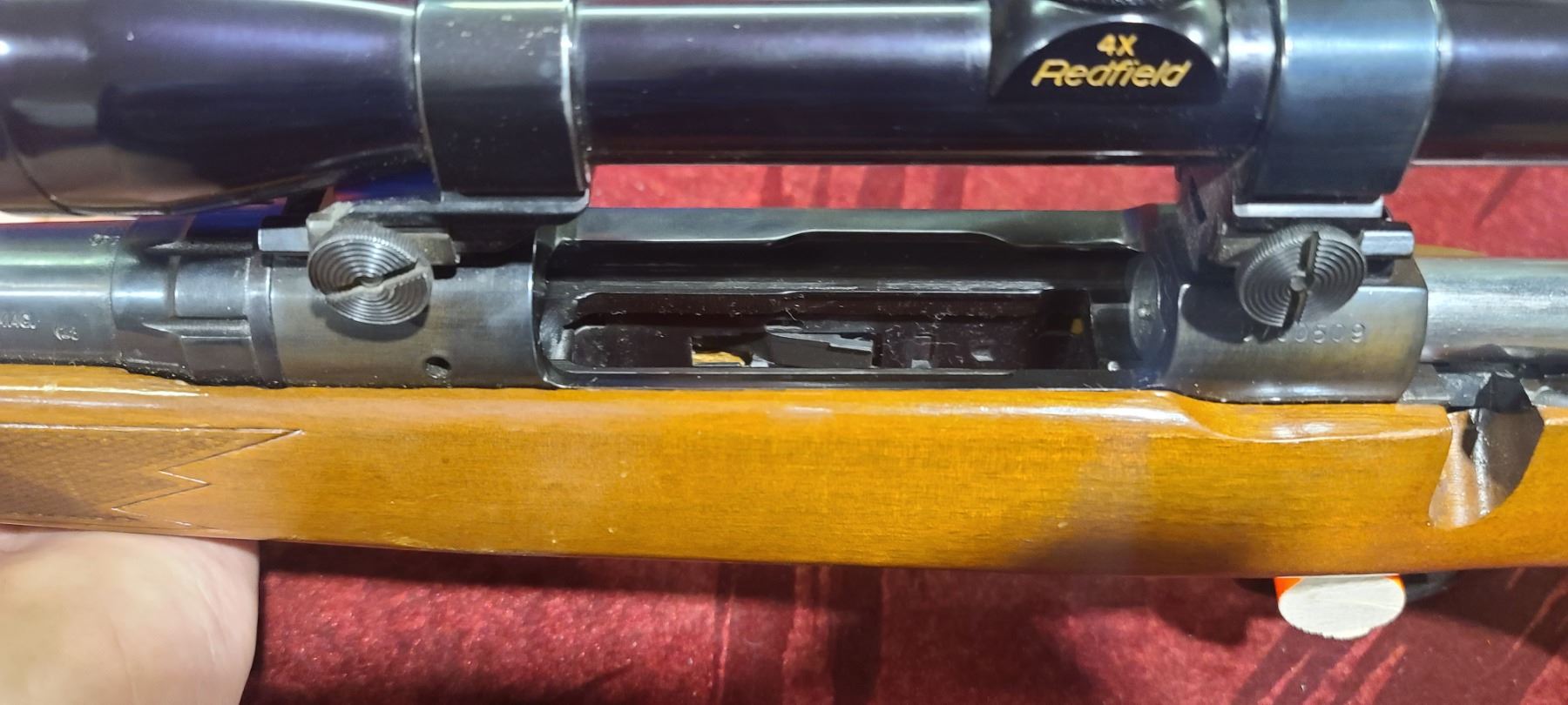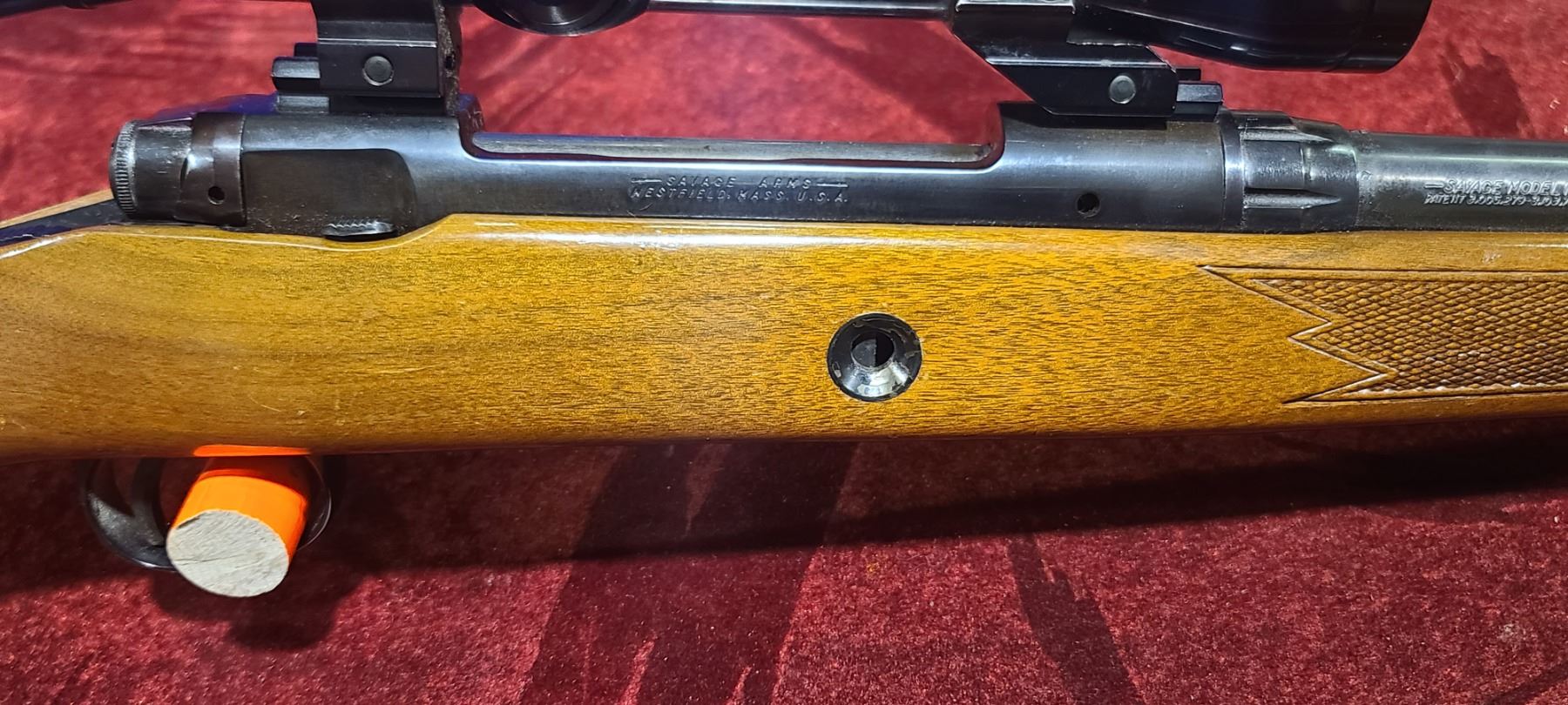LEFT HANDED SAVAGE MODEL 1100L SERIES J - COMES WITH 4X REDFIELD SCOPE - 24" BARREL - MISSING BEAD ON FRONT SIGHT - SN:B780509
