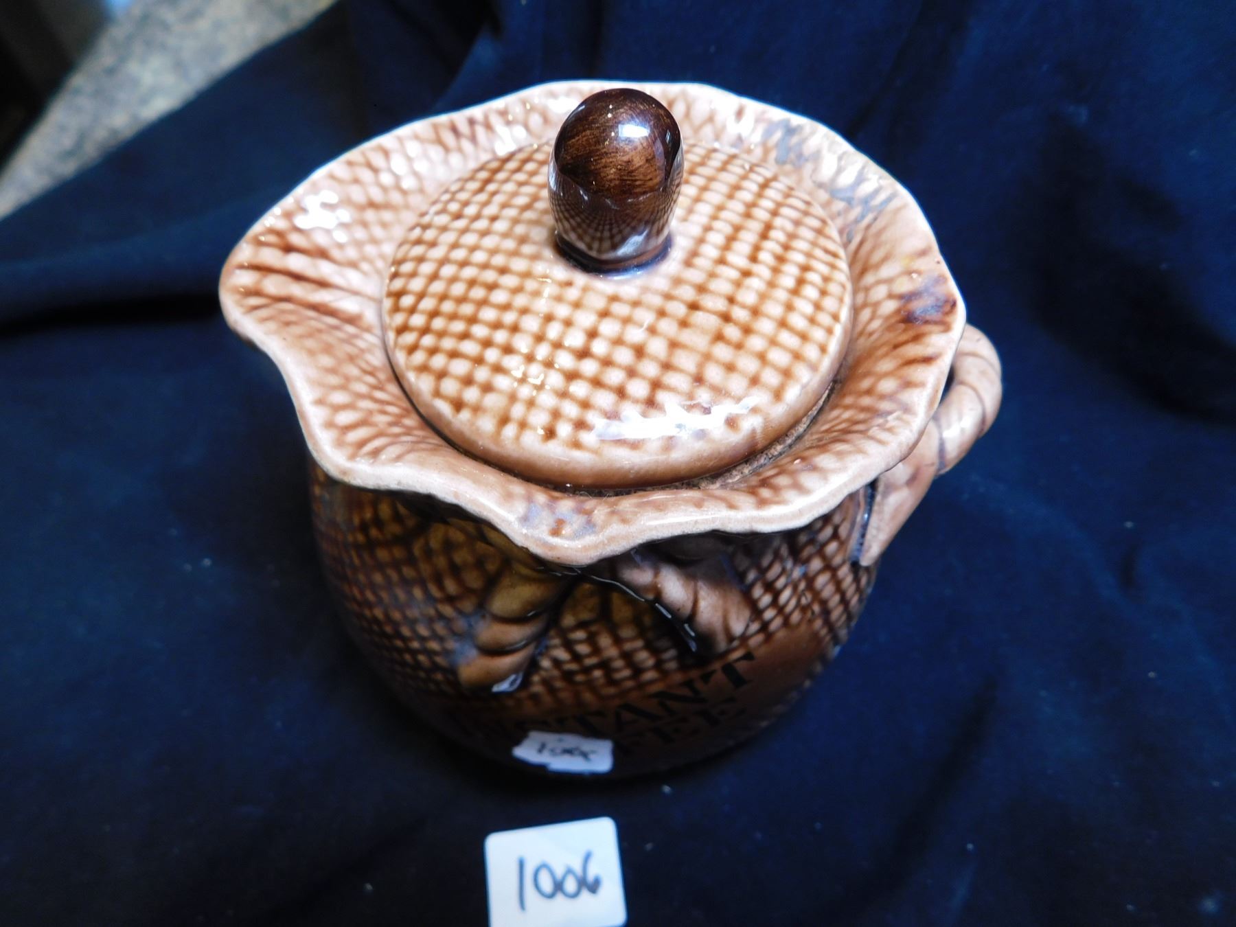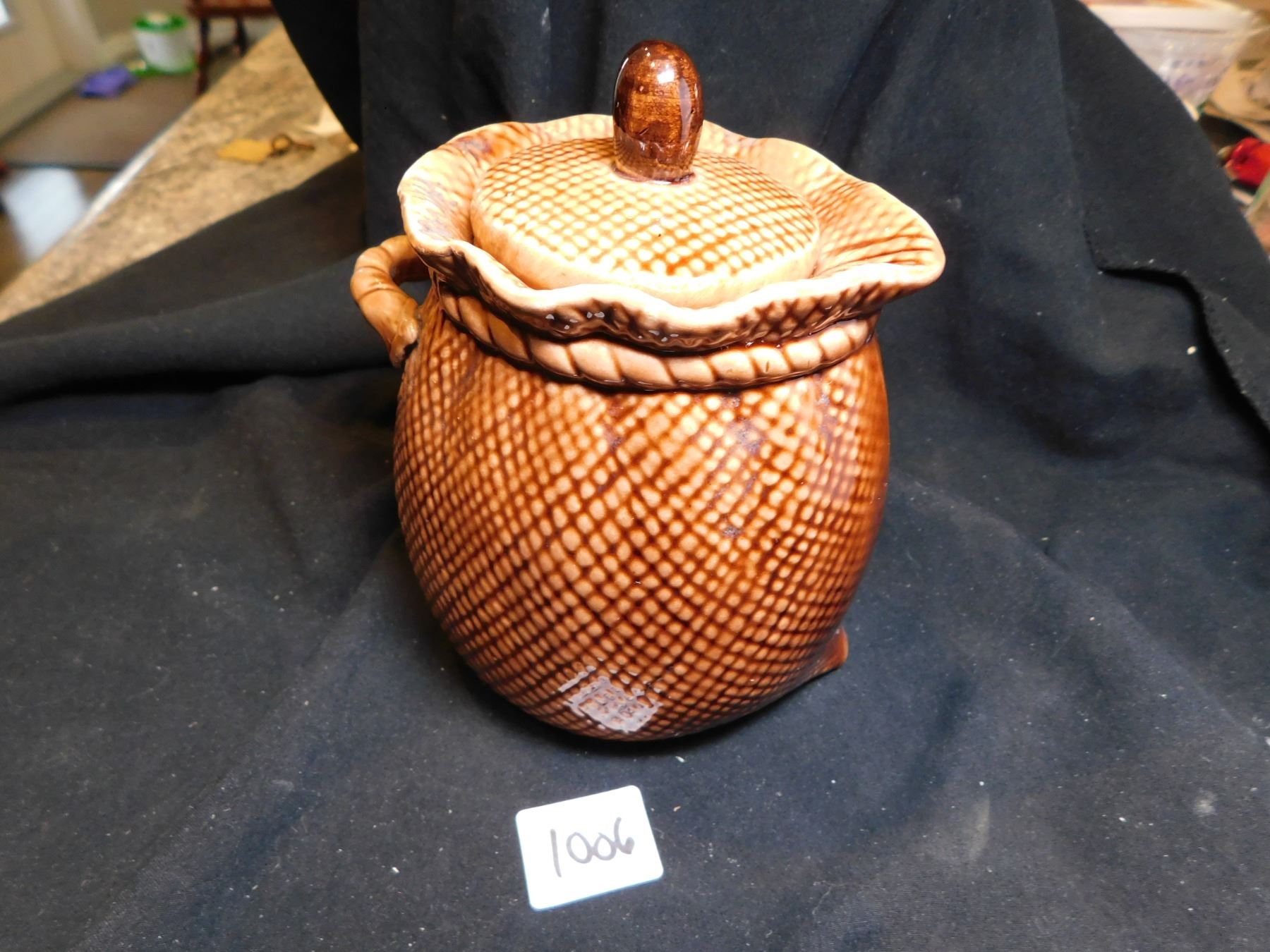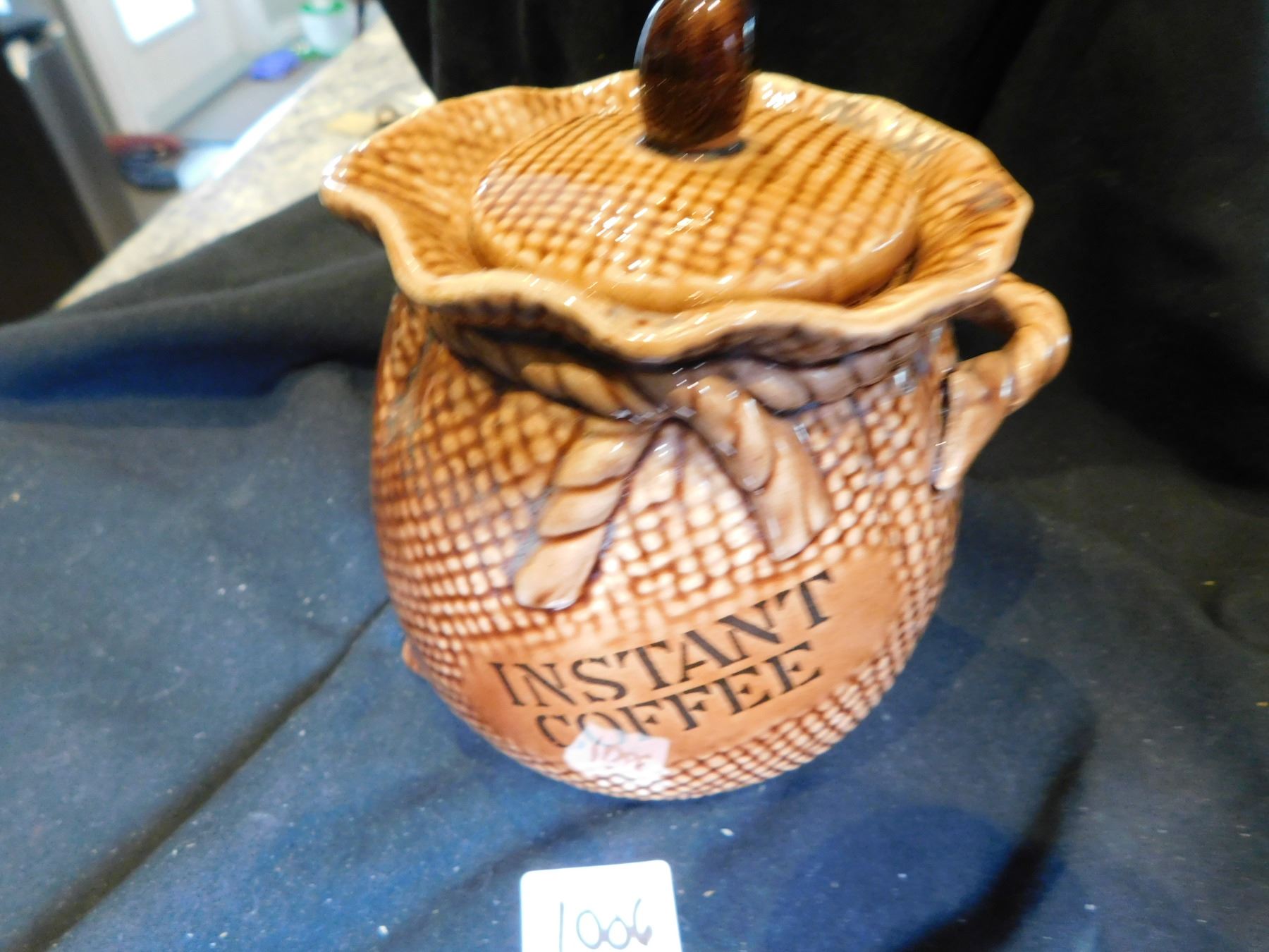 LEFTON CERAMIC BURLAP BAG, INSTANT COFFEE CANISTER, JAPAN