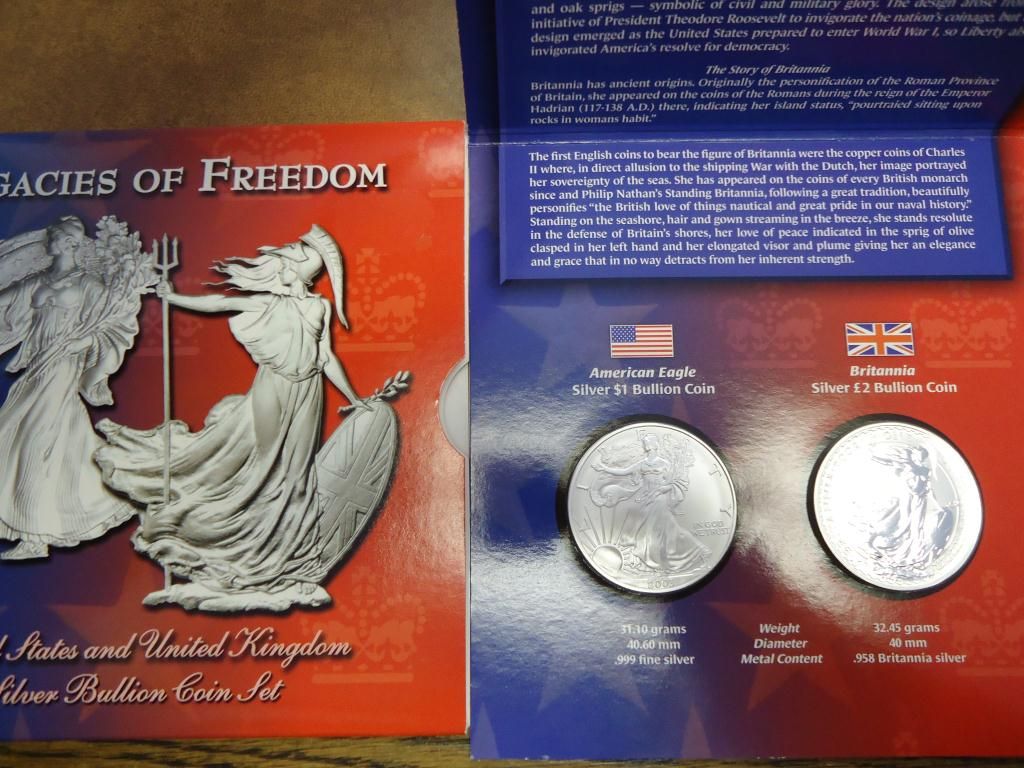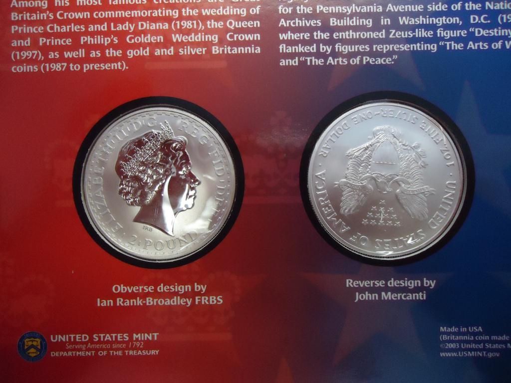 CONTAINS: 2003 AMERICAN SILVER EAGLE AND 2002 UNITED KINGDOM BRITTANIA,ORIGINAL MINT PACKAGING