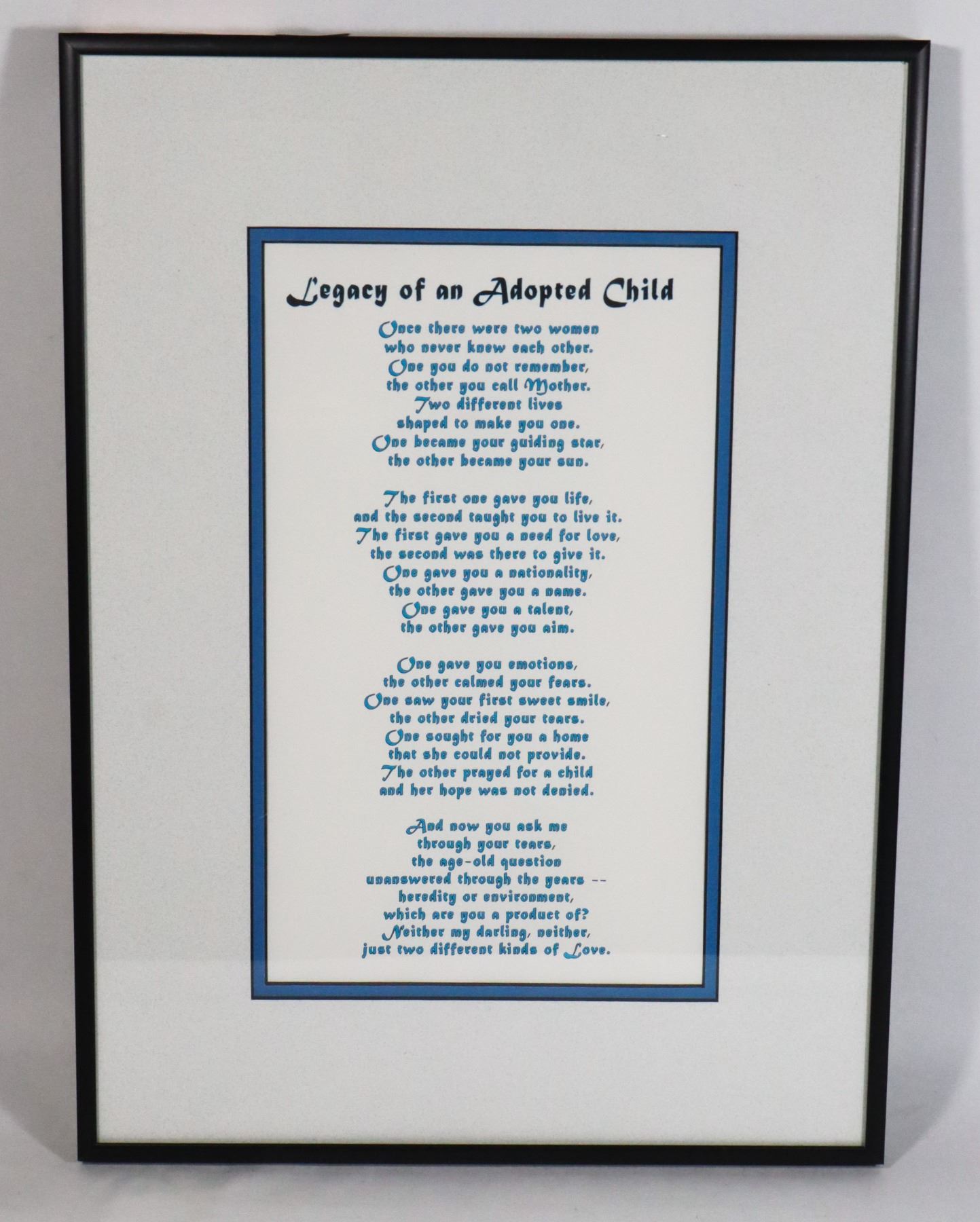 "LEGACY OF AN ADOPTED CHILD" FRAMED 16X11.5"
