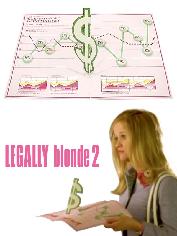 This is the Screen Used, and Matched pop up chart from LEGALLY BLONDE starring Reese Witherspoon.