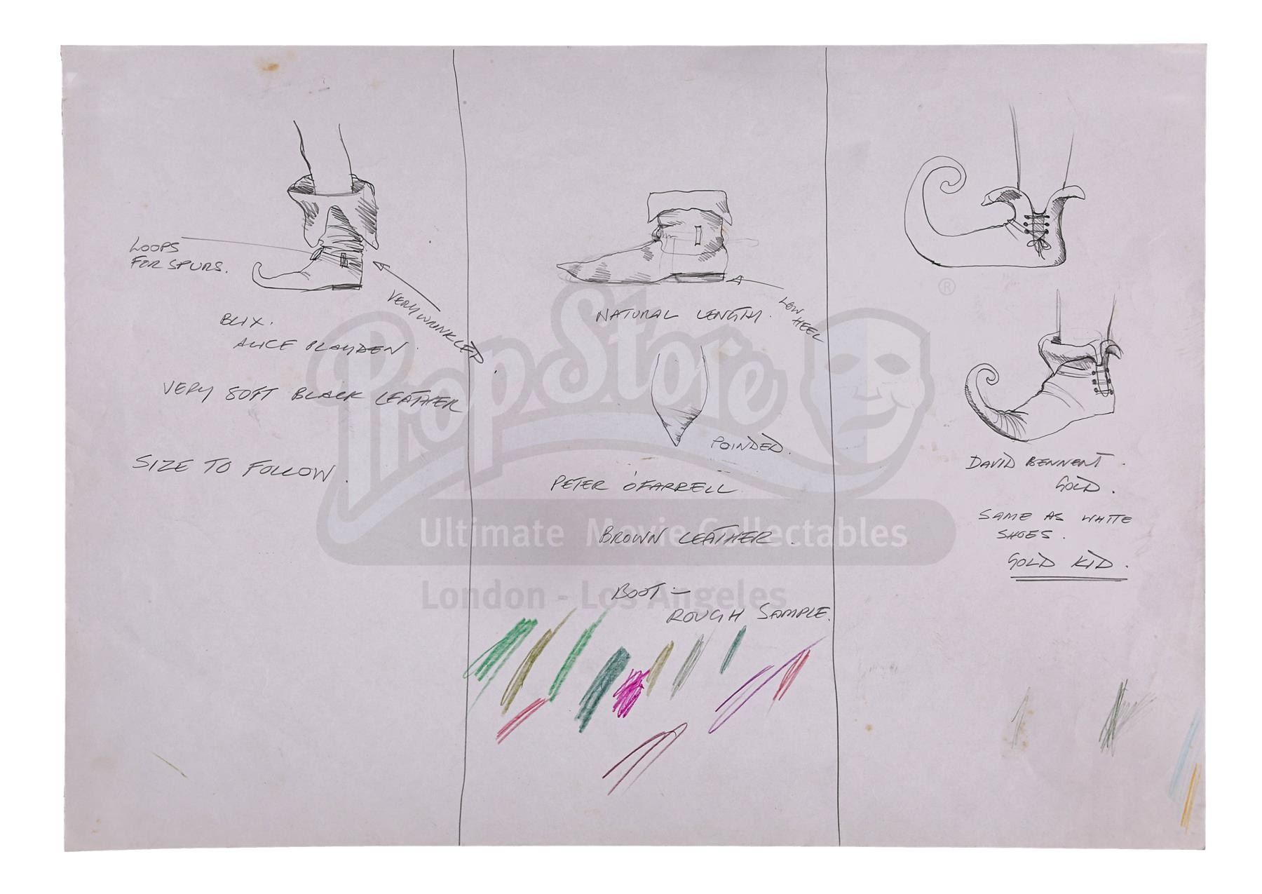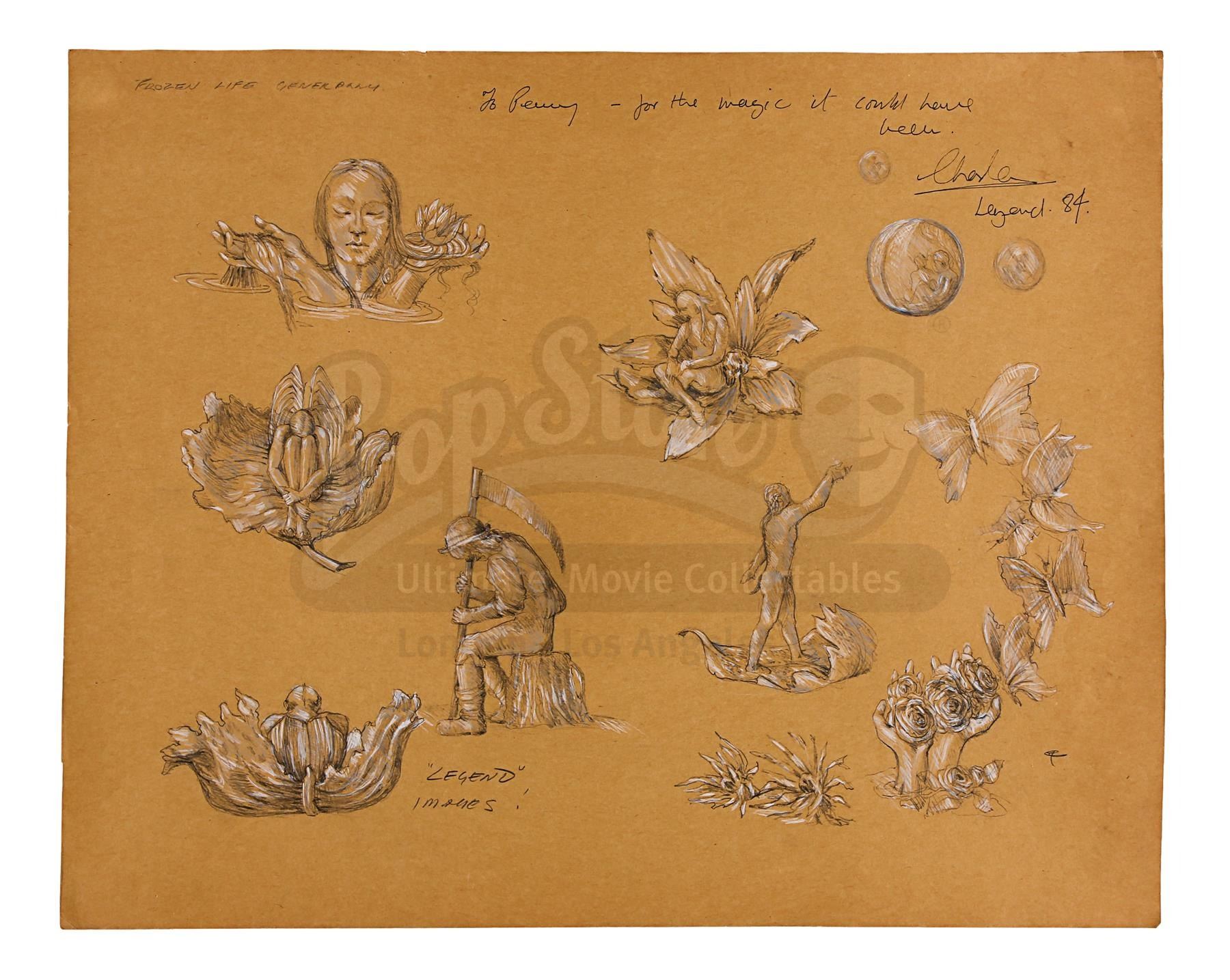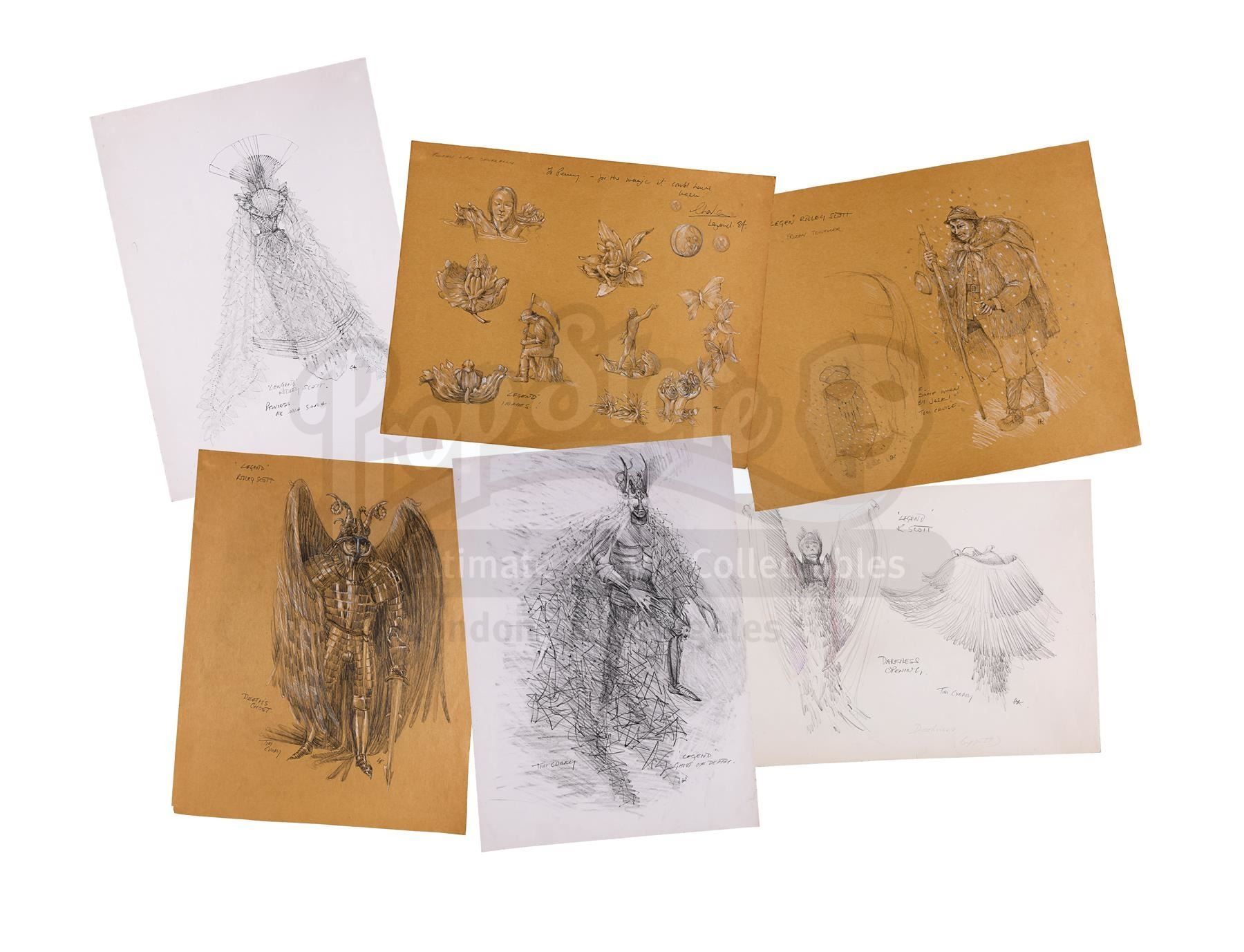 A set of 10 Charles Knode costume designs from the production of Ridley Scott's fantasy film Legend. Oscar nominee and two-time BAFTA winner Charles Knode was the costume designer for such films as Jabberwocky, Monty Python's Life of Brian, Blade Runner and Braveheart.