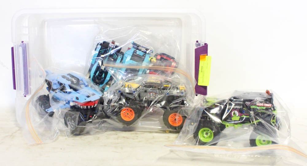 3 MONSTER TRUCKS, FIRETRUCK AND RACECAR