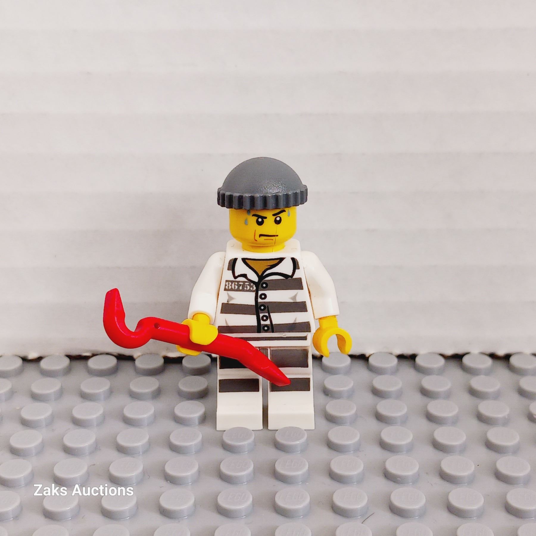 Police - Jail Prisoner 86753 Prison Stripes, Dark Bluish Gray Knit Cap, Reddish Brown Beard and Stubble *Wrong Head*