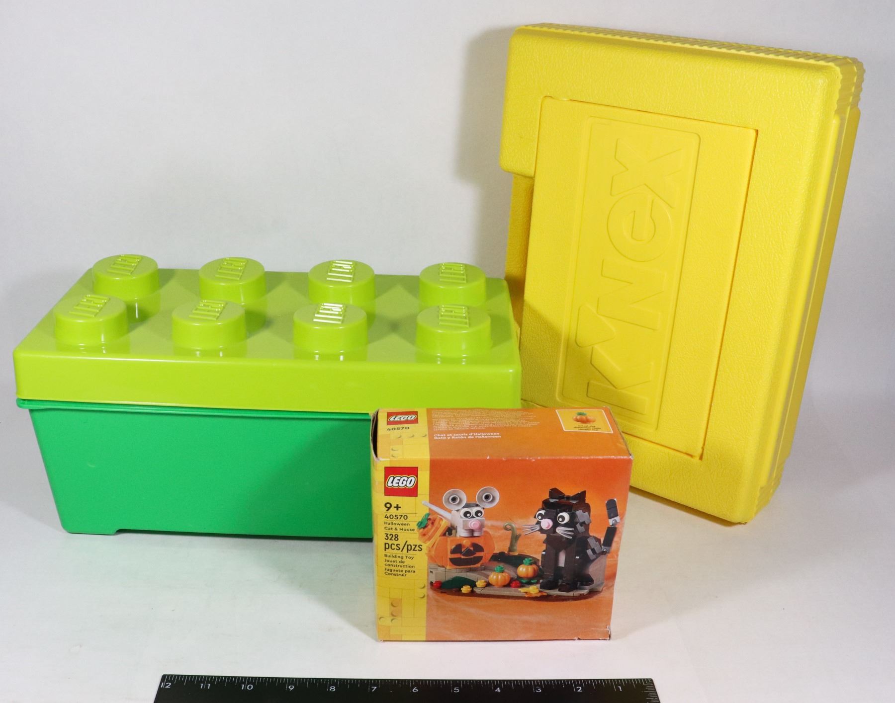 WITH HALLOWEEN CAT & & MOUSE BUILDING SET. UNKNOWN IF COMPLETE. SOLD WITH EMPTY K'NEX STORAGE BOX. APPROX.. 14.25"X10.5"X4" OUTSIDE