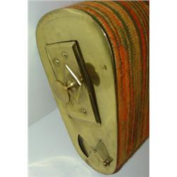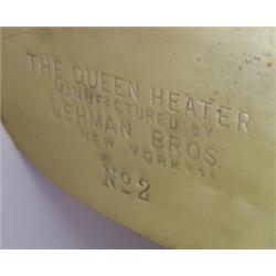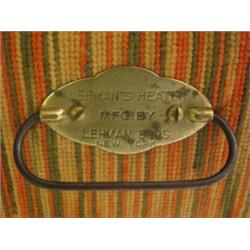 LEHMAN'S HEATER FOOTWARMER. Brass casing with yarn cover. Plate reads "Lehman Heater-Mfg. by Lehman Bros.-New York". End is marked "The Queen Heater-Manufactured by Lehman Bros-New York-No. 2". 13.25" L