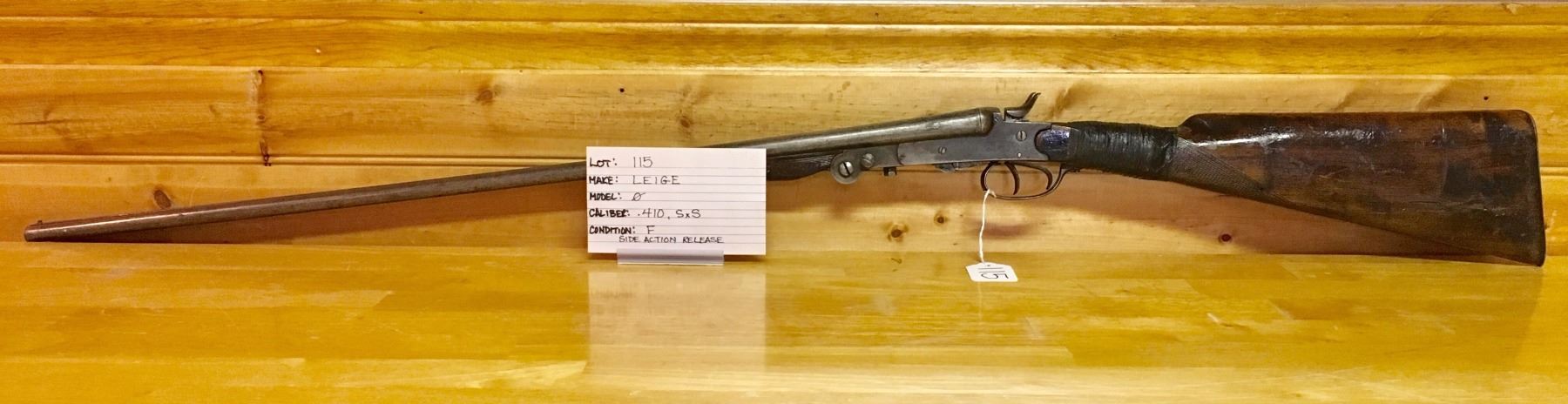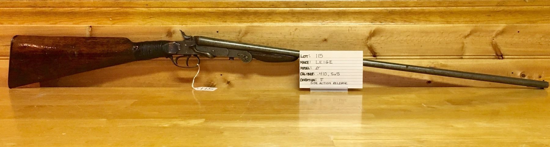 LOT: 115 MAKE: LEIGE MODEL: NONE CALIBER: 410, SxS, SIDE ACTION RELEASE CONDITION: F S/N: NONE