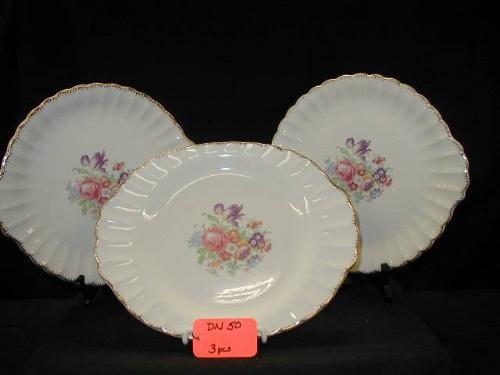 LEIGHWARE SERVICE SET, 22K GOLD TRIM, INCLUDES (1) 11 1/4in RND. TAB HNDL. PLATTER, (1) 11 3/8in RND. TAB HNDL. PLATTER (FLEA BITE UNDER HNDL.), (1) OVAL 11 7/8in TAB HNDL. PLATTER (SM. FLEA BITES UNDER RIM), 3 PCS.