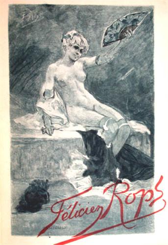 Edition originale. Ex. du tirage courant non numéroté, illustré de nombreux clichés in texto ou à pleine page, du portrait photographique de Rops en frontispice et de 26 planches soit 2 planches originales ("Maturité", # Rouir 724.5, # Exsteens 517 et "La grève", # Rouir 758.7, Exsteens 343), 2 planches gravées par Bertrand (couverture titrée tirée en couleurs au repérage, # Exsteens 865.2 et "La pierreuse", # E. 879) et 22 héliogravures.