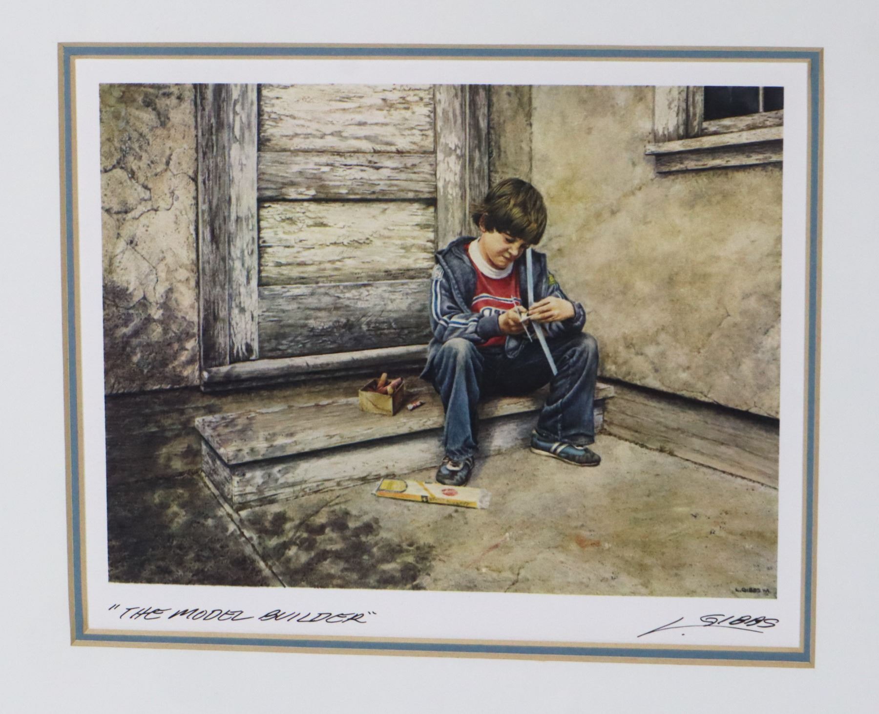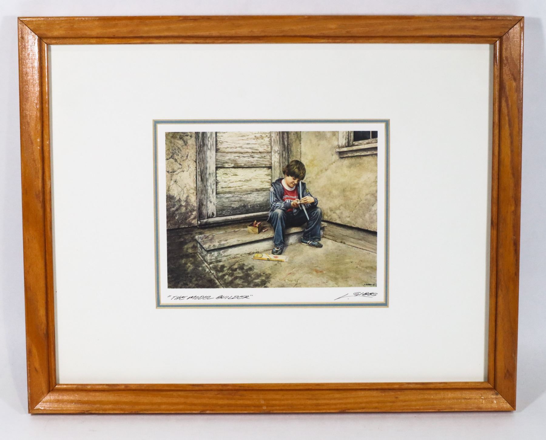 " THE MODEL BUILDER" NOT A NUMBERED PRINT. LEN GIBBS IS A CANADIAN ARTIST (BORN IN CRANBROOK BC)