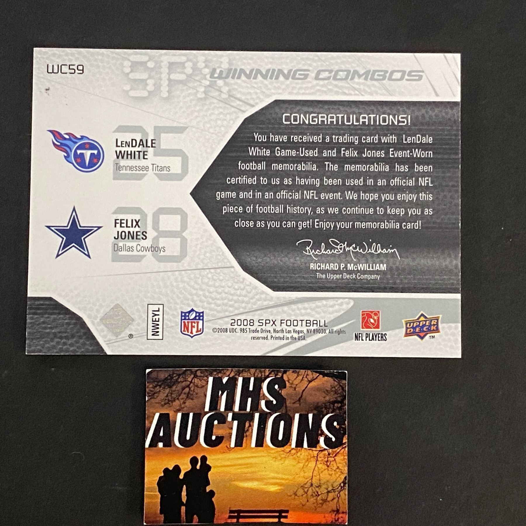 LENDALE WHITE & FELIX JONES 2008 SPX DUAL JERSEY CARD