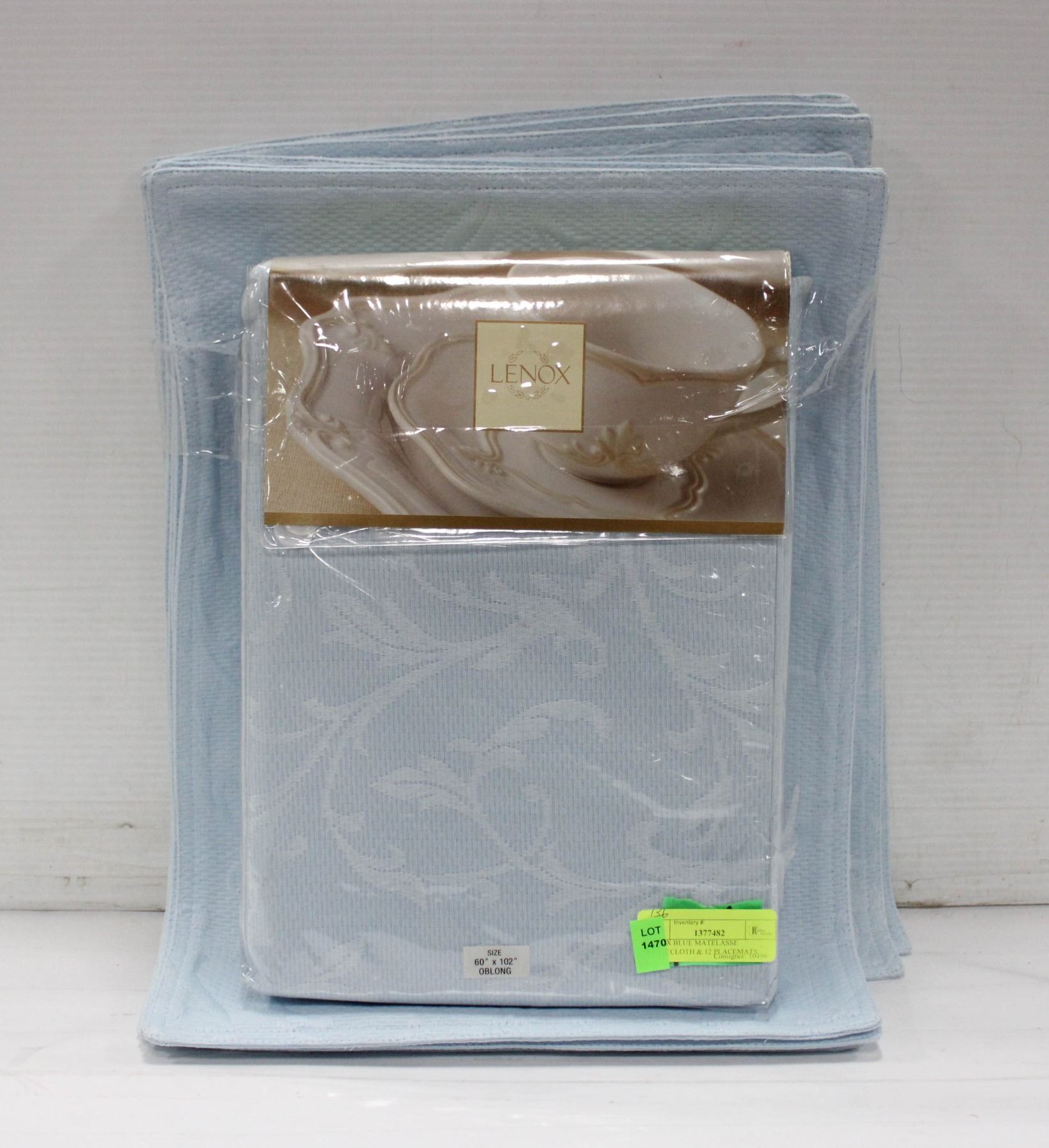 LENOX BLUE MATELASSE TABLECLOTH & 12 PLACEMATS