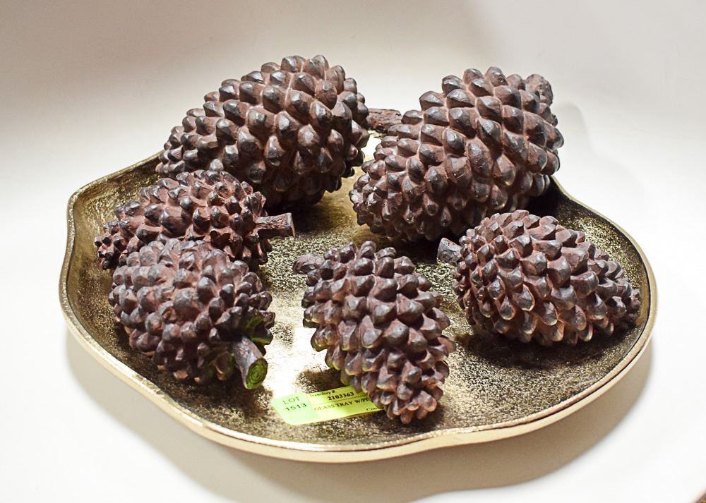 LENOX GLASS TRAY W/PINE CONE DECOR
