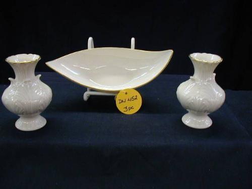 LENOX INCLUDES (2) VASES 4 3/8inT EXCELLENT, (1) 8 5/8in CANDY DISH EXCELLENT, 3 PC