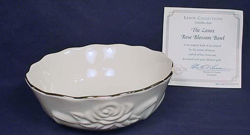 LENOX ROSE BLOSSOM BOWL W/ 24K GOLD RIM - Approx. 5.5" diameter by 1.75" tall