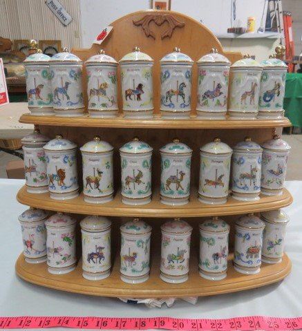 LENOX SPICE BOTTLES W/ WOOD STAND W/24 LABELLED BOTTLES