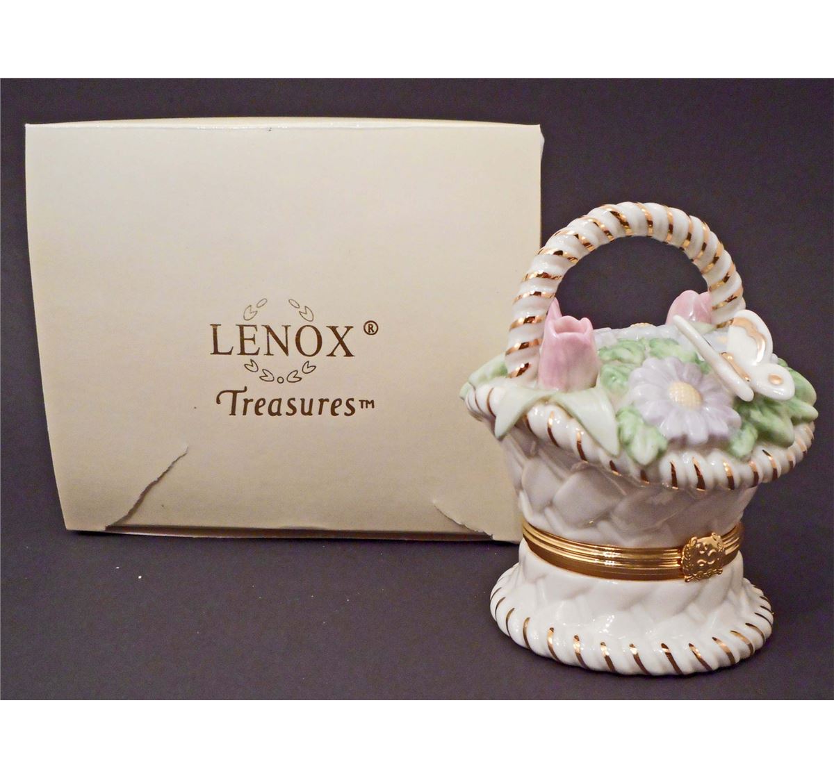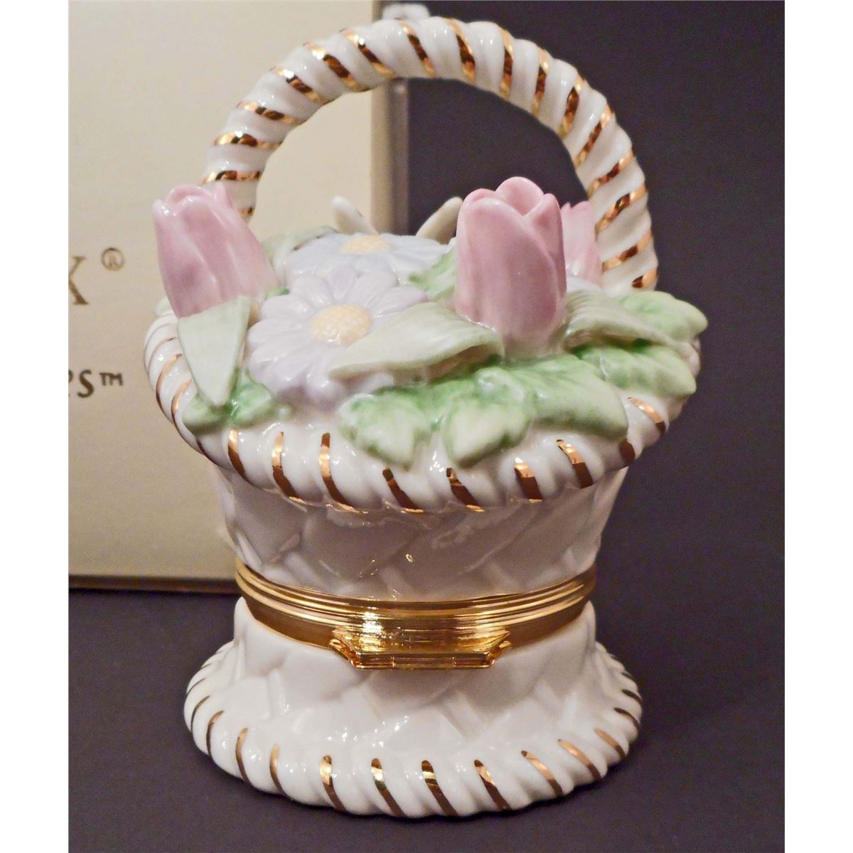 Approx 3.5" tall. Comes w/ Original Box. Original Work of Art. Box is individually crafted of Ivory Fine China, accented w/ hand-applied pure 24 karat gold.