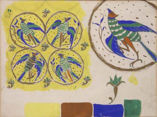 Additional Information : This fine bird mortif is a design for a screen for Diaghilev's production at the Alhambra Theatre in London in 1921.