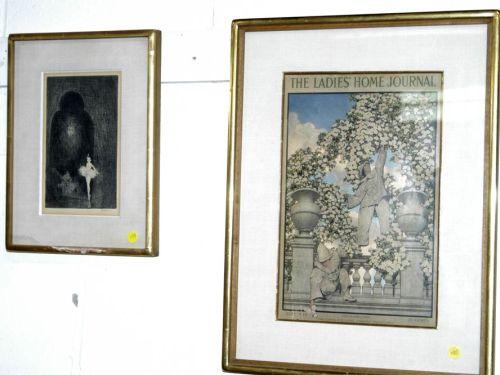 LEON DOLICE ETCHING, 9"x5", pencil signed, together with a MAXFIELD PARRISH MAGAZINE COVER, PACKING AND SHIPPING (excluding insurance) $40
