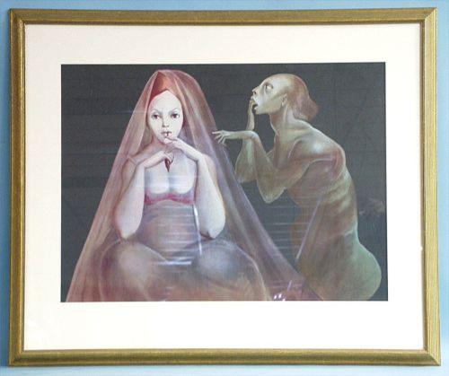 LEONORA FINI (1908-1996) Italian school. "Two Women". A limited edition lithograph from the series "1001 Nights". Pencil signed and numbered 32/275. 21" x 28". In gilt frame. Reference: Benezit, volume 3, page 756. Provenance Gallerie Carpentier, Paris, F