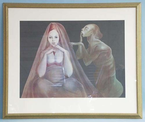 LEONORA FINI (1908-1996) Italian school. "Two Women". A limited edition lithograph from the series "1001 Nights". Pencil signed and numbered 32/275. 21" x 28". In gilt frame. Reference: Benezit, volume 3, page 756. Provenance Gallerie Carpentier, Paris, France. 700-900