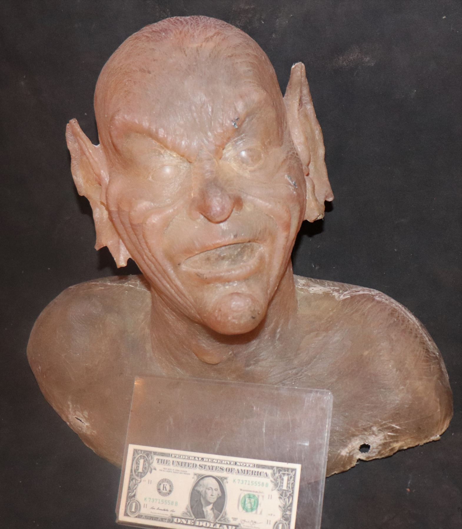 All descriptions, photographs, illustrations, and terminology including but not limited to words describing condition, authorship, period, culture, source, origin, measurement, quality, rarity, provenance, importance, exhibition, and relevance, used in the catalog, bill of sale, invoice, or anywhere else, represent a good faith effort made by HORRORDOMAIN.COM to fairly represent the lots and property offered for sale as to origin, date, condition, and other information contained therein; they are statements of opinion only. HORRORDOMAIN.COM and the Consigner are not responsible for any errors or omissions in the printed or online catalogues, online listings or any other material. It is the Bidder’s responsibility to view the images or fully inspect the property before bidding to determine the condition and size and also to determine if has been repaired or restored. They are not representations or warranties and Bidder agrees and acknowledges that he or she shall not rely on them in determining whether or not to bid or for what price. Price estimates (which are determined well in advance of the auction and are therefore subject to revision) and condition reports are provided solely as a convenience to Bidders and are not intended nor shall they be relied on by Bidders as statements, representations or warranties of actual value or predictions of final bid prices.