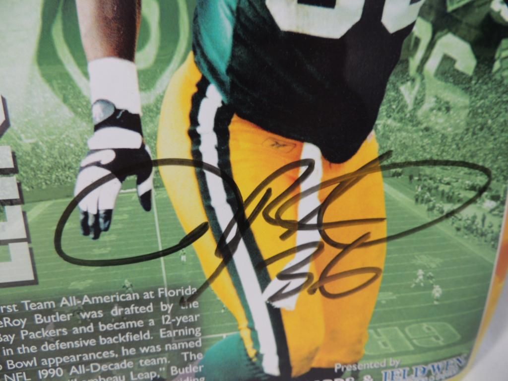 LEROY BUTLER AUTOGRAPHED 8X10 PHOTO AS SHOWN. VIEW PICTURE FOR DETAIL. PLEASE BE ADVISED, AND INFORMED REGARDING SIGNATURES OR AUTOGRAPHS THAT WE SELL AT AUCTION: WE ARE NOT AUTHENTICATORS, AND WE DO NOT AUTHENTICATE, OR VALIDATE ANY AUTOGRAPHS OR SIGNATURES THAT WE OFFER AT AUCTION. SOME AUTOGRAPHS OR SIGNATURES MAY COME WITH AN AUTHENTICATION FROM ANY ONE OF LITERALLY HUNDREDS OF AUTHENTICATORS ACROSS THE COUNTRY, AND AROUND THE WORLD. WE DO NOT ENDORSE ANY AUTHENTICATOR, NOR DO WE GUARANTEE THAT ANY AUTOGRAPH OR SIGNATURE IS AUTHENTIC, OR THAT IT WILL PASS AUTHENTICATION BY ANY AUTHENTICATOR. ALL AUTOGRAPHS OR SIGNATURES ARE SOLD