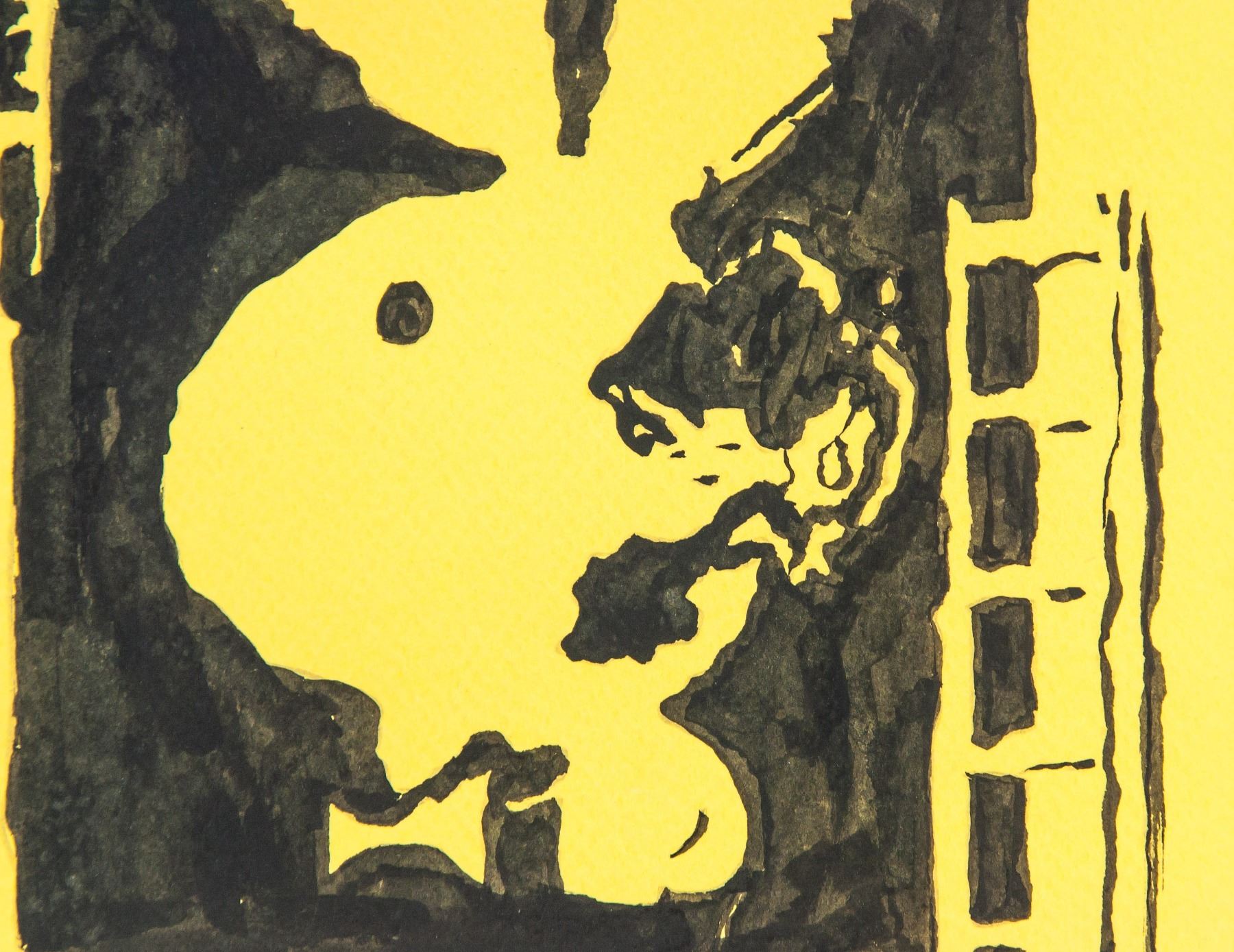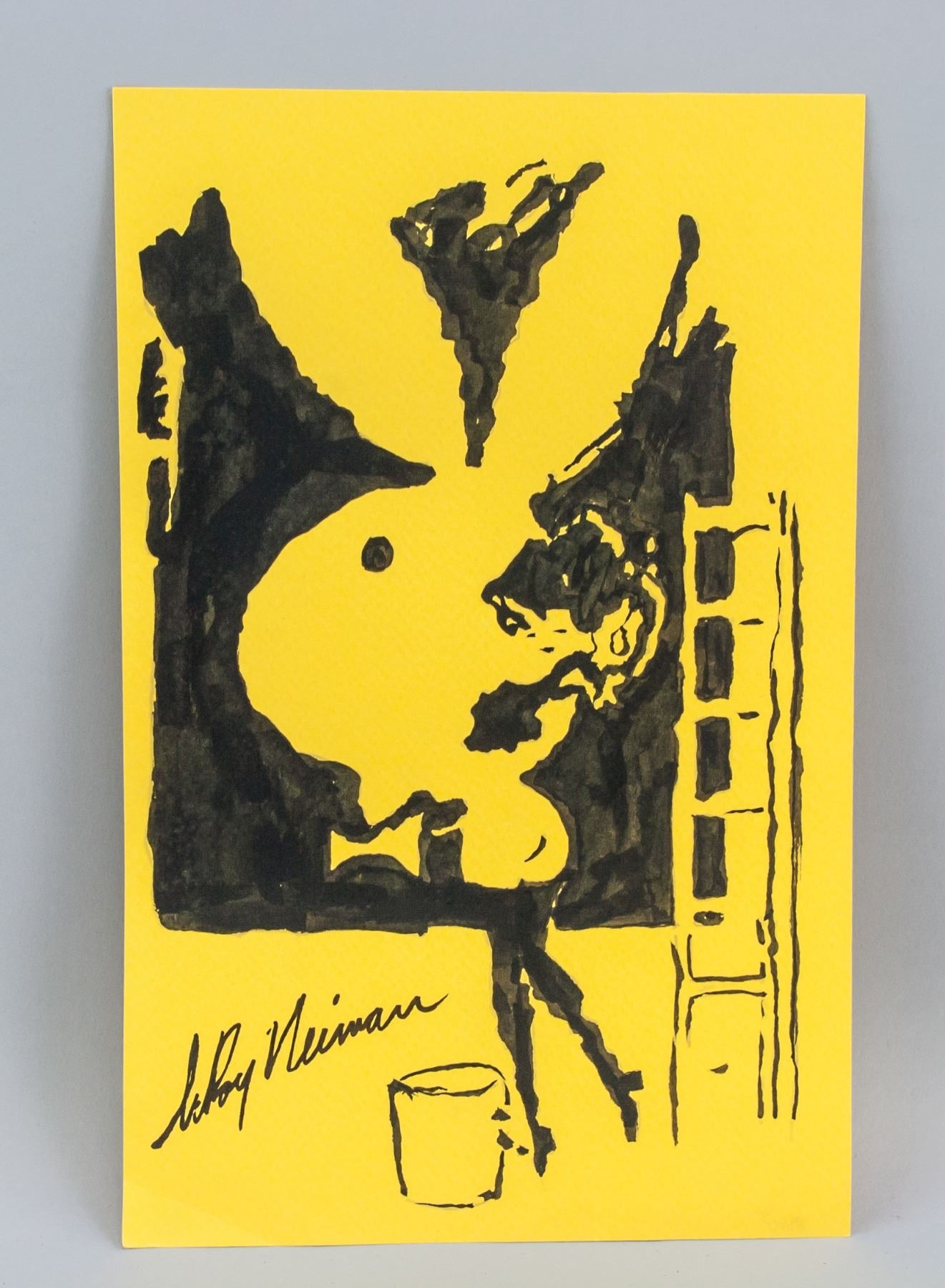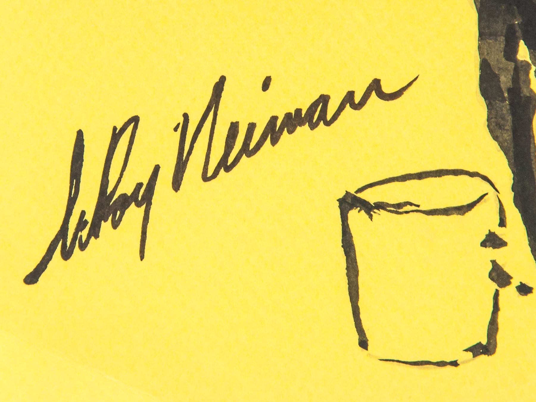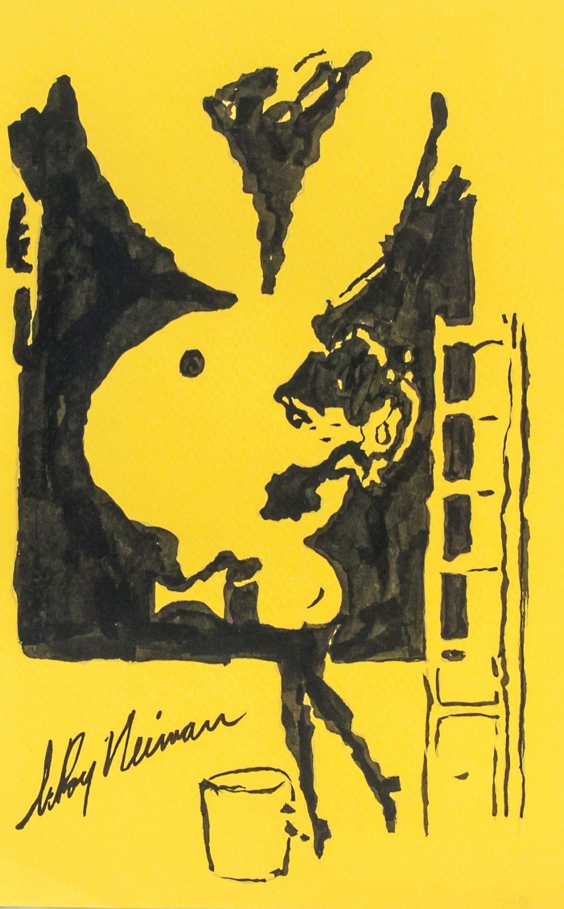 Ink on yellow paper. Featuring a lady painting wall. Signed and attr. LeRoy Neiman (American, 1921-2012). SIgnature on lower left corner. 10.2 x 6.5 in (26 x 16.5 cm). Best known for his brilliantly colored, stunningly energetic images of sporting events and leisure activities, LeRoy Neiman is probably the most popular living artist in the United States. The artistic style of the fabulously successful Neiman is familiar to a remarkably broad spectrum of Americans –“rich and poor, black and white, urban and rural, educated and illiterate,” and young and old alike. He was the official artist at five Olympiads. PROVENANCE: Private collection (South America)