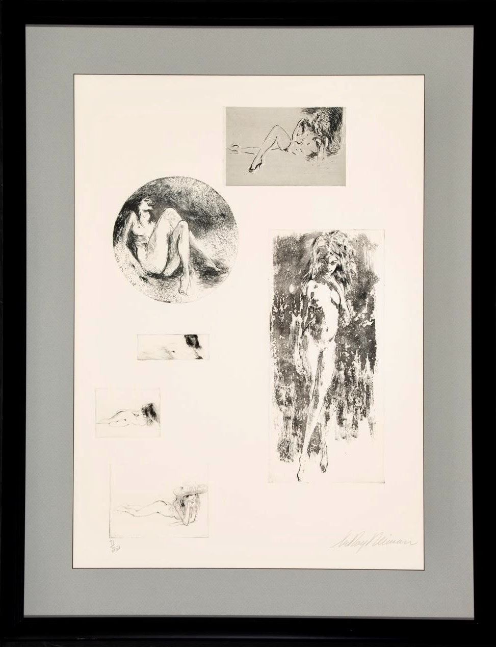 LeRoy Neiman (American, 1921-2012) Rare etching on paper. Titled: "Nude Study." Sheet 29 x 20.5 inches (sight), Framed 38 x 29 inches. Hand signed in pencil and numbered (71/250) in pencil along lower edge.