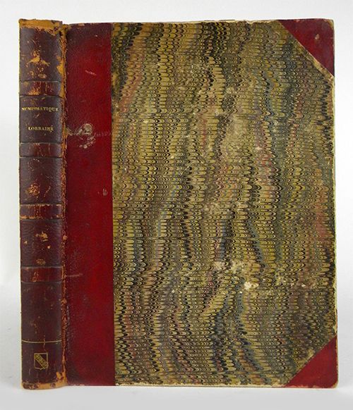 Saulcy, F. de. RECHERCHES SUR LES MONNAIES DES DUCS HÉRÉDITAIRES DE LORRAINE. Metz, S. Lamort, 1841. Tall 4to, nineteenth century red half morocco, gilt. x, (2), 247 pages; 36 lithographic plates; 3 page Note Supplémentaire. Binding somewhat worn but sound; contents a little foxed. Very good or so. The classic, still indispensable work on the coins of Lorraine. Rare: we last sold this copy in Sale 38, and haven't offered another one since. Clain-Stefanelli 8972. Engel et Serrure 5784.