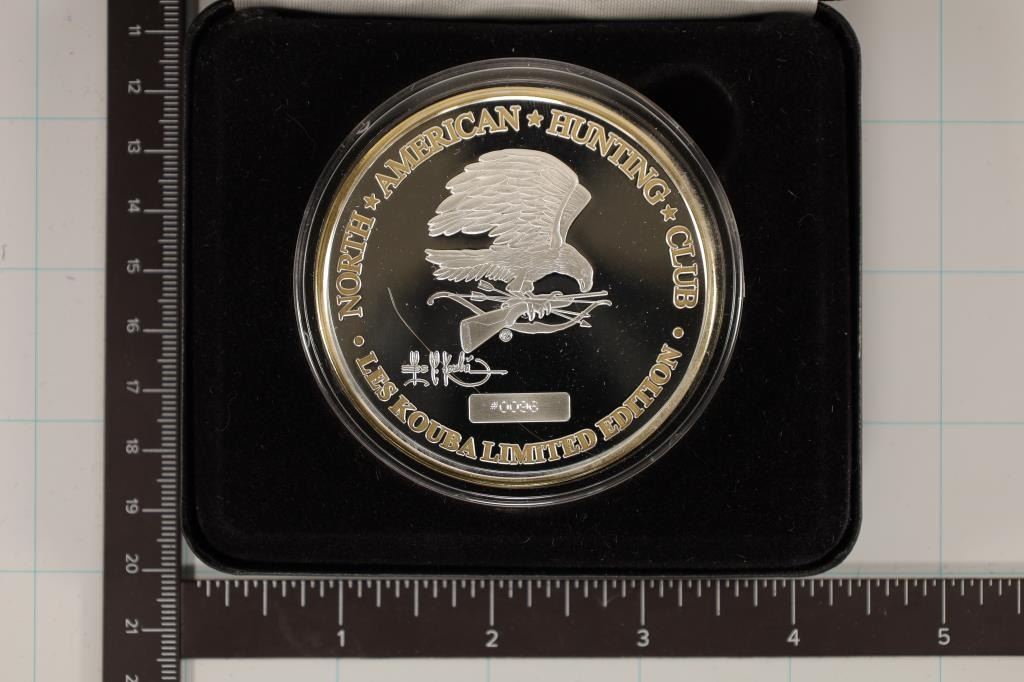 WITH GOLD ACCENT MEDAL. PROOF QUALTIY IN ORIGINAL MINT PACKAGING. LIMITED EDITION NORTH AMERICAN HUNTING CLUB. 2 1/2" IN DIAMETER