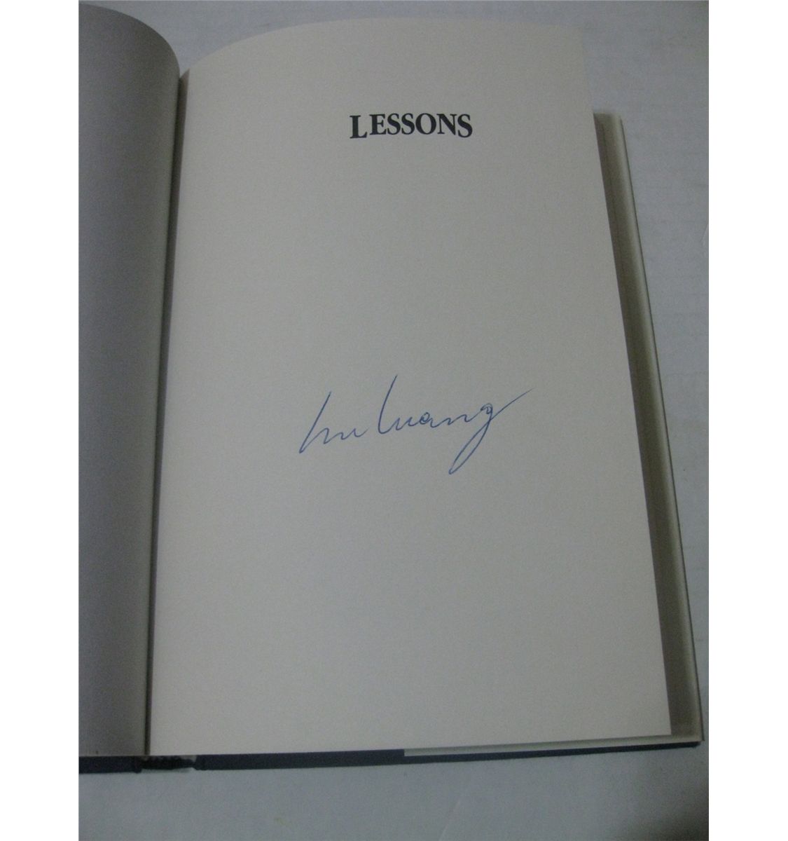 LESSONS An Autobiography Hardcover Book HAND SIGNED by An Wang on the half-title page in blue ink. The dust jacket has some minor handling wear.