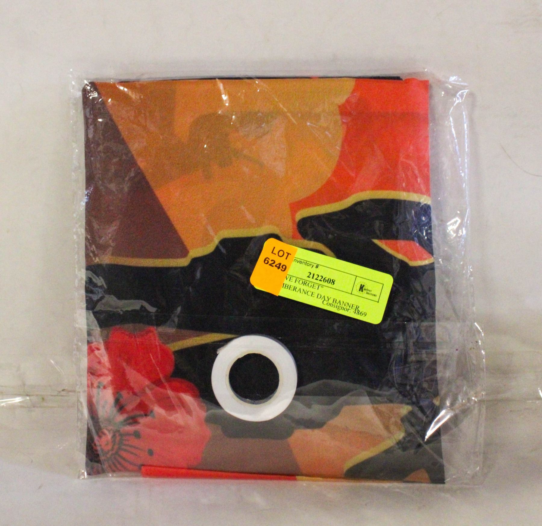 19.5" X 118" BANNER WITH GROMMETS AND TAPE FOR HANGING