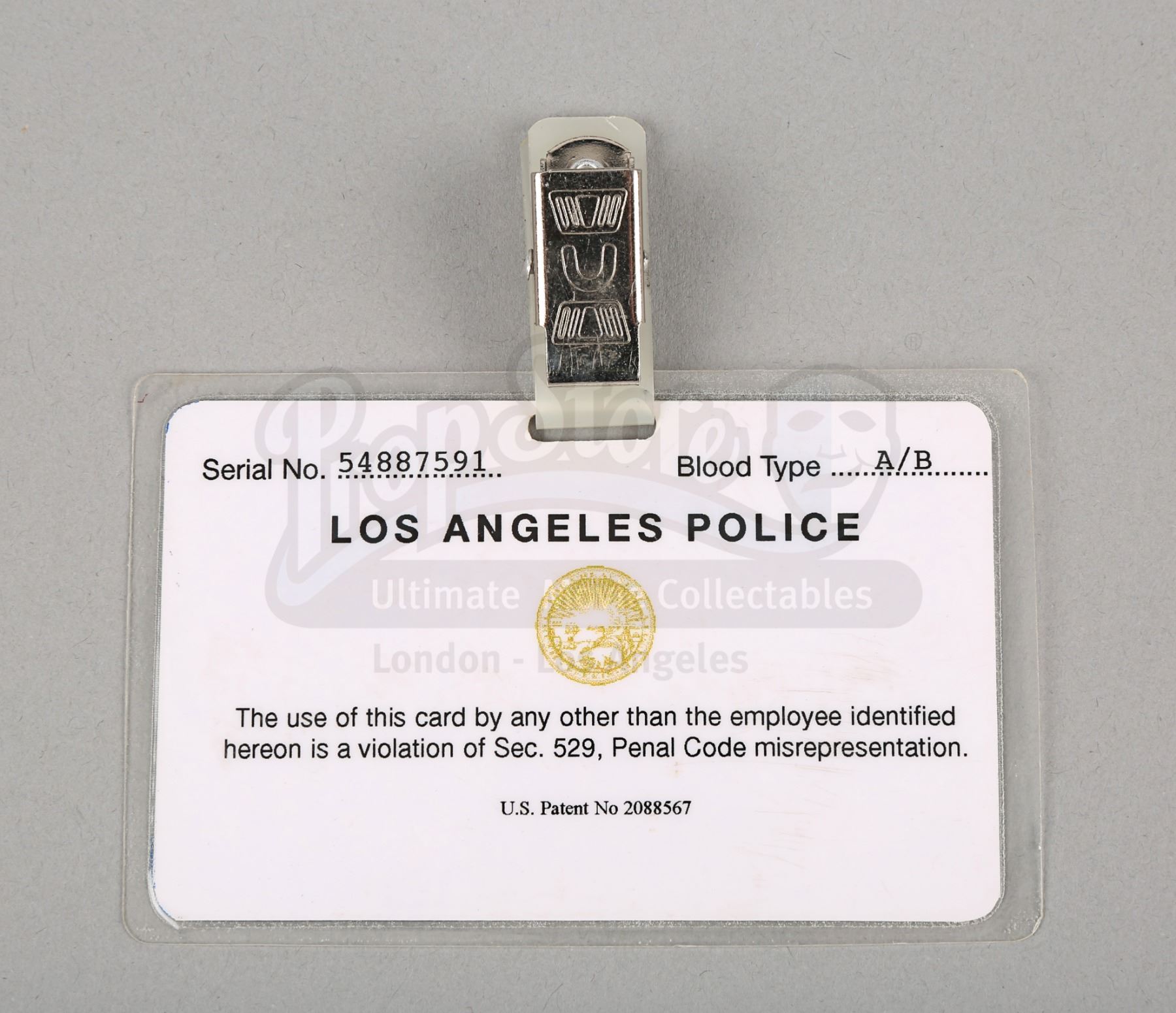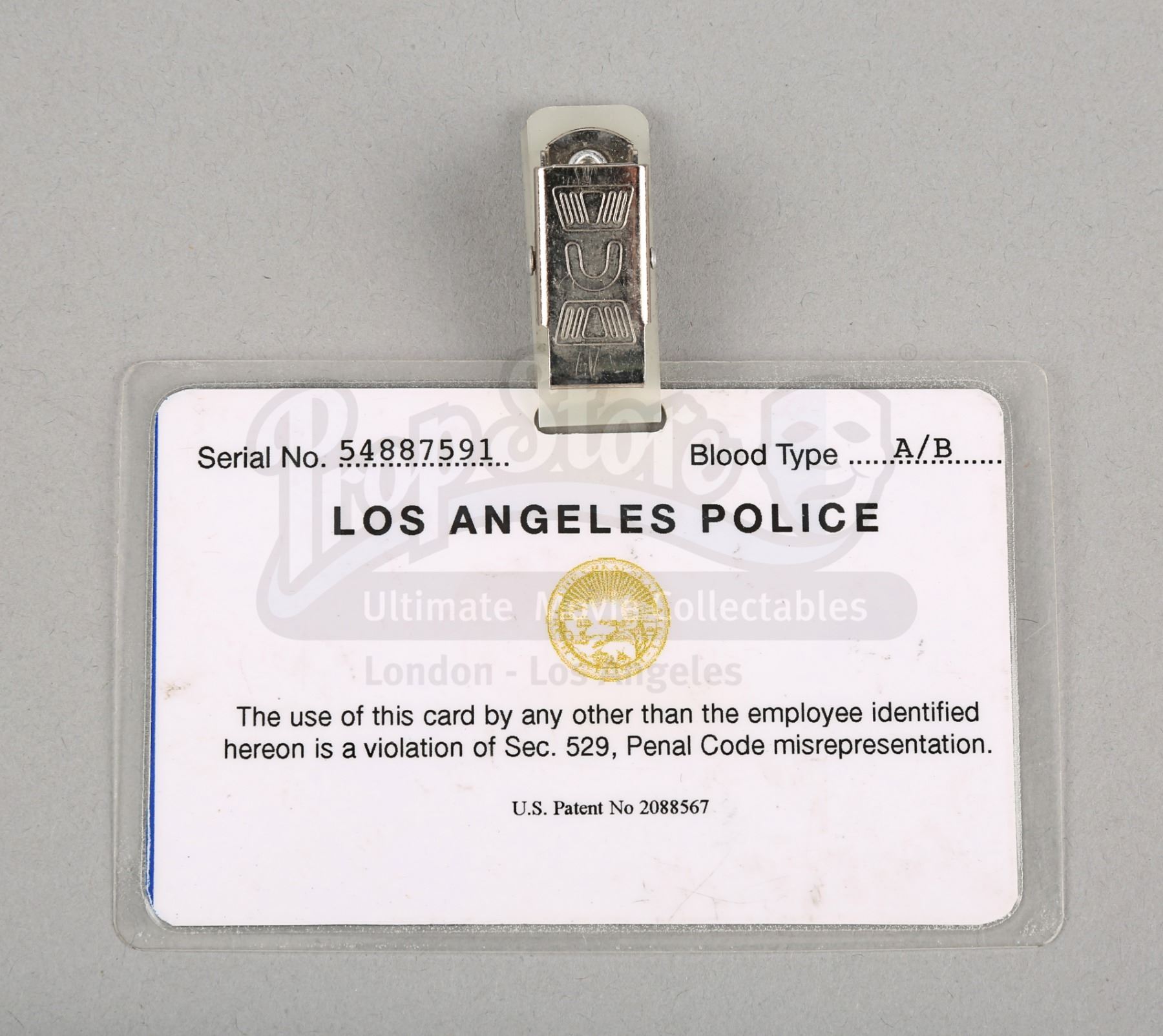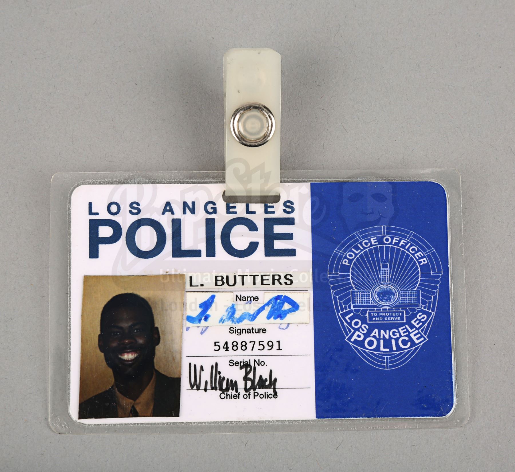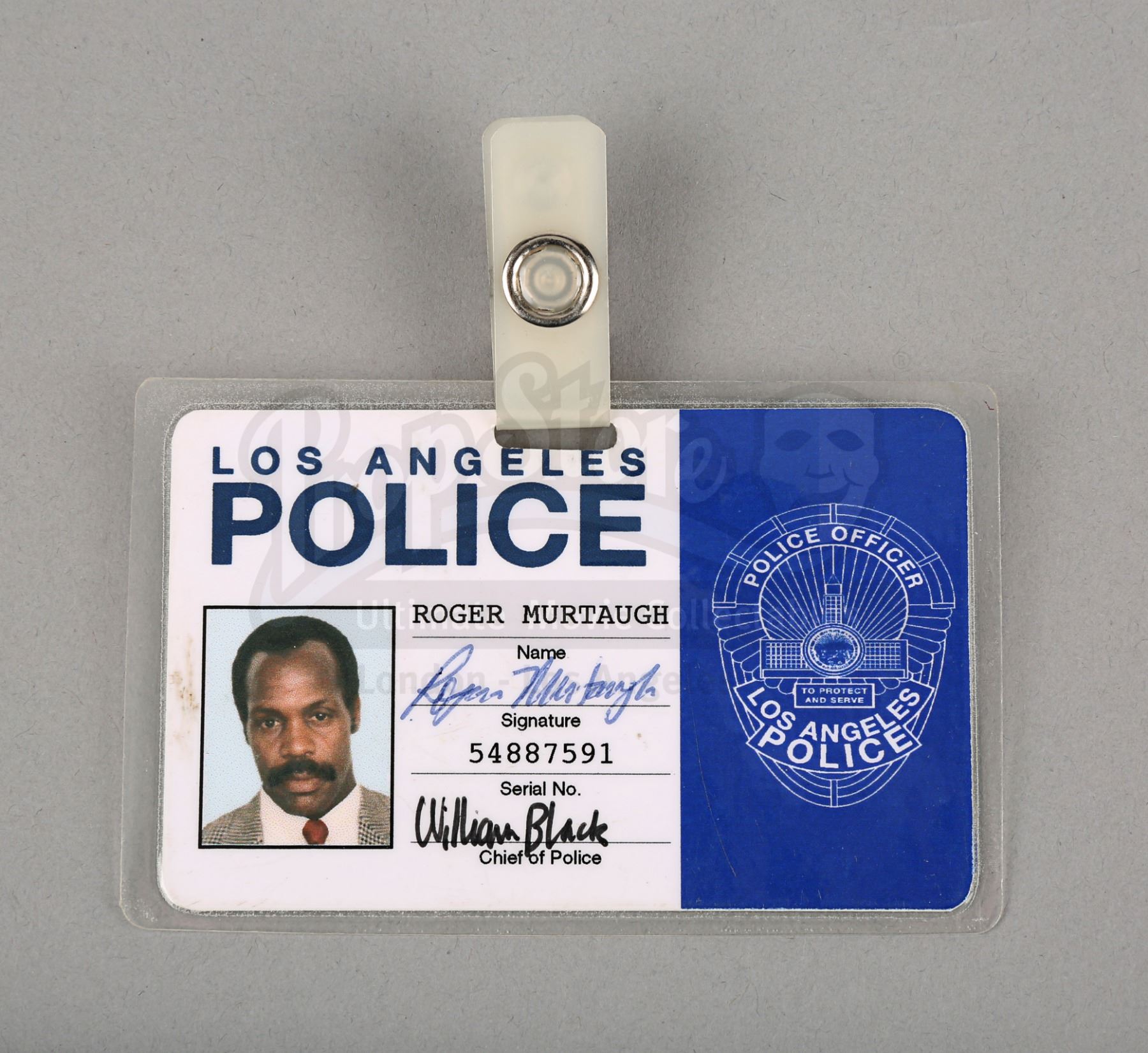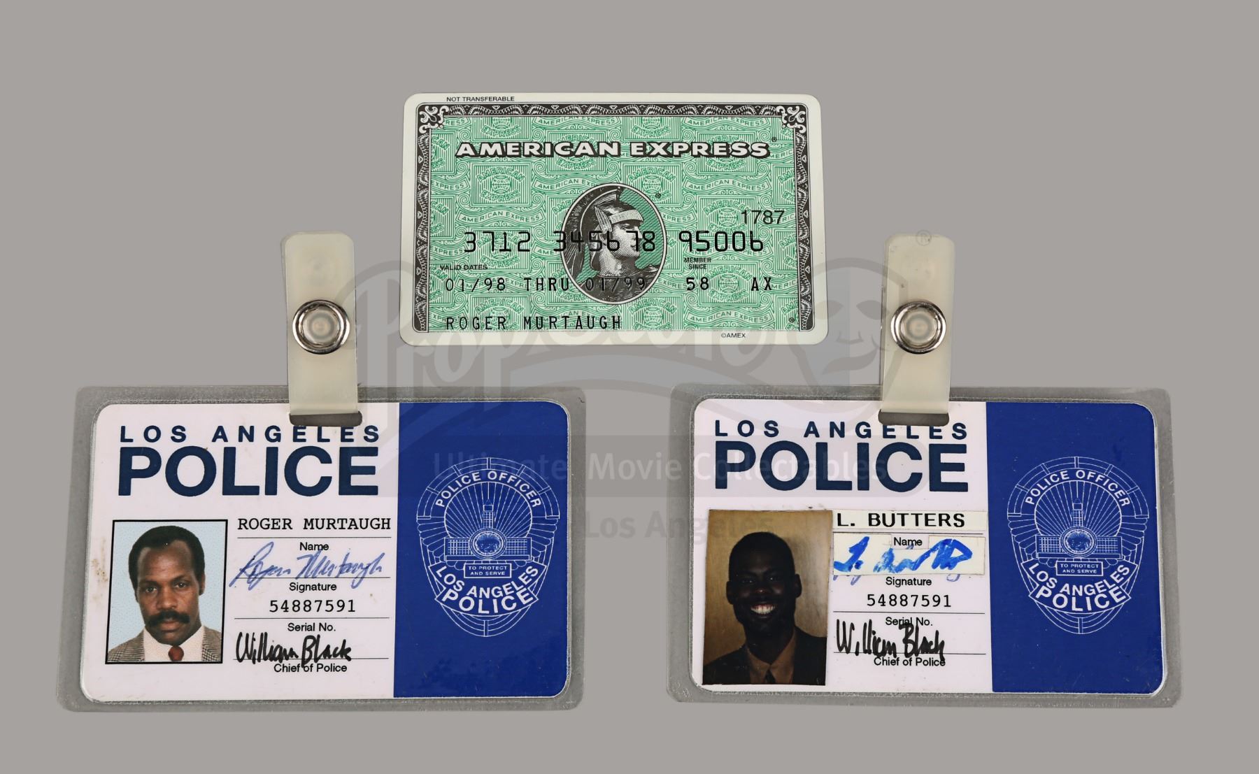 Detective Murtaugh's (Danny Glover) ID badge and credit card, and Lee Butters' (Chris Rock) ID, from Richard Donner's action-thriller sequel Lethal Weapon 4. Police officers wore their ID badges in the Los Angeles Police Department's precinct offices.