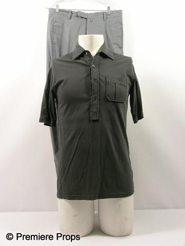 Letters to Juliet (2010) - Charlie (Christopher Egan) screen worn, hero, dark grey jersey cotton button front short sleeve with collar, 'Equipe' polo shirt, (no size) and grey white cotton pinstripe 'Peuteray' pants. (no size) This costume was worn in multiple scenes and was the 8th outfit worn.