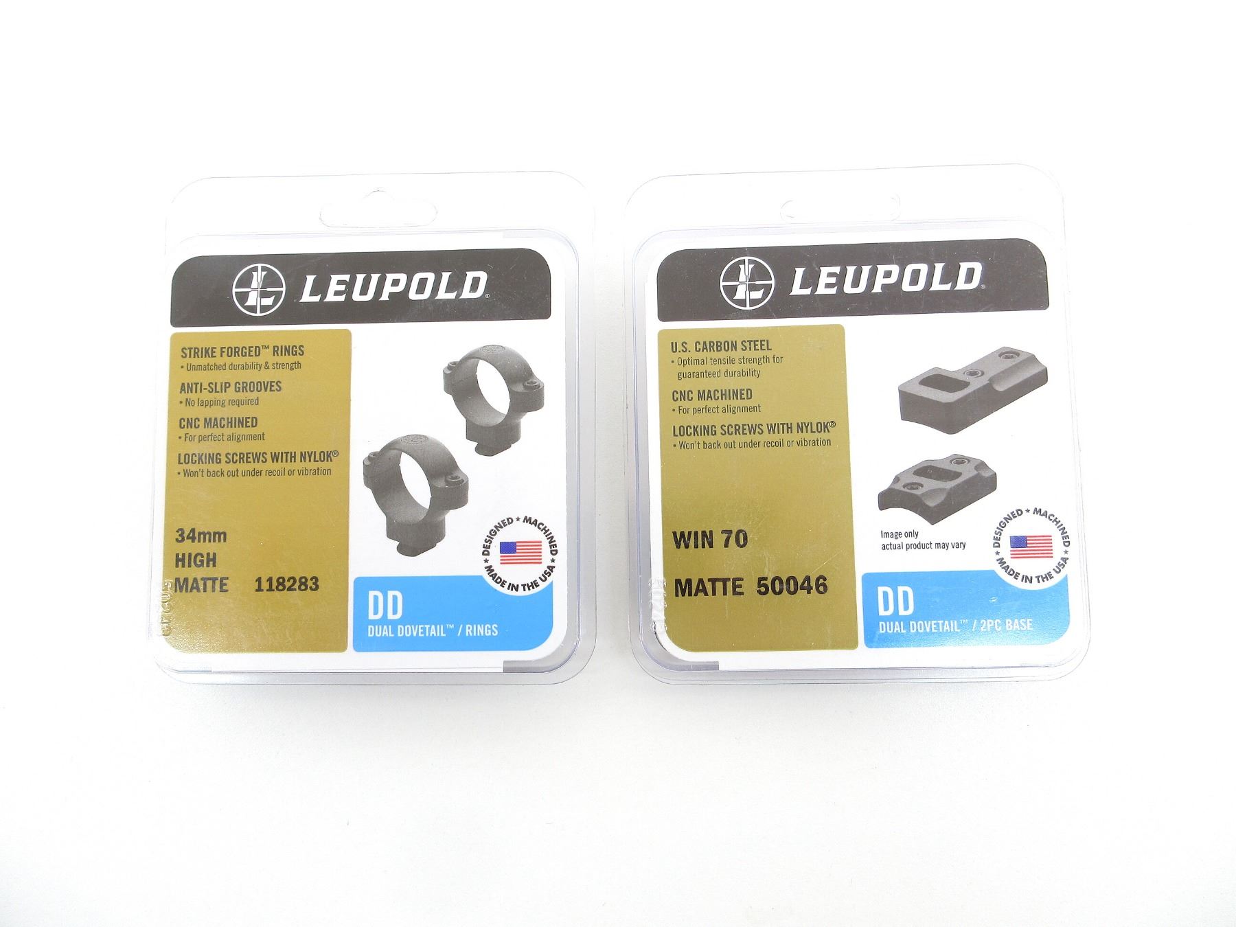LOT INCLUDES; (1) SET OF 34MM SCOPE RINGS, BLACK MATTE, HIGH, DUAL DOVETAIL, PART #: 118283, APPEARS NEW OLD STOCK IN ORIGINAL PACKAGING & (1) WIN 70 SCOPE BASE, MATTE BLACK STEEL CONSTRUCTION, DUAL DOVETAIL, PART #: 50046, APPEARS NEW OLD STOCK IN ORIGINAL PACKAGING. MAY REQUIRE FITTING. SEE PHOTOS.