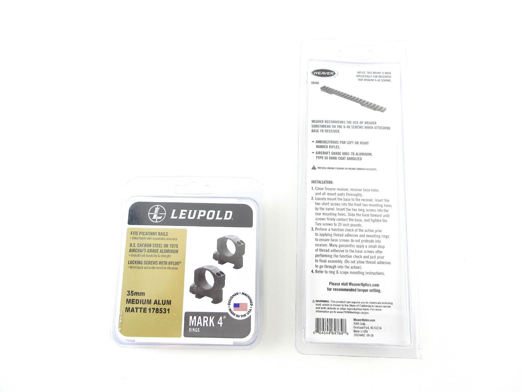 LEUPOLD 35MM SCOPE RINGS AND SAVAGE 10 SHORT ACTION SCOPE BASE MOUNT LOT