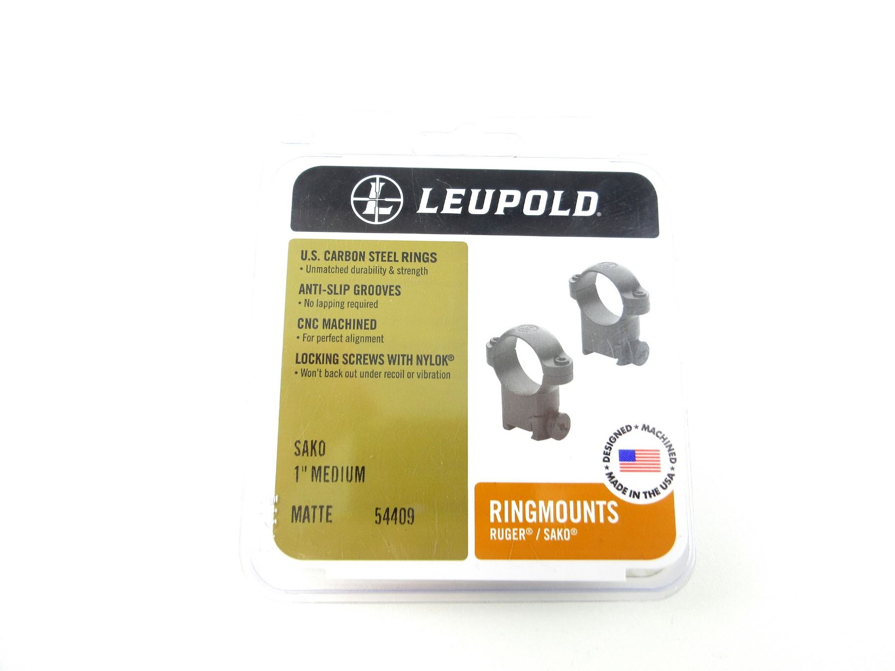 (1) SET OF 1" RUGER / SAKO SCOPE RINGS, BLACK MATTE ALUMINIUM, MEDIUM, PART #: 54409, APPEARS NEW OLD STOCK IN ORIGINAL PACKAGING. MAY REQUIRE FITTING. SEE PHOTOS.