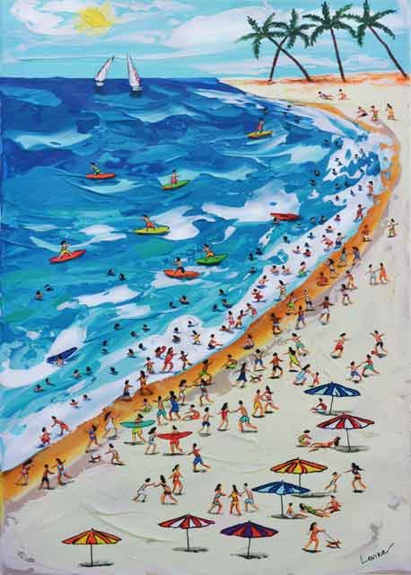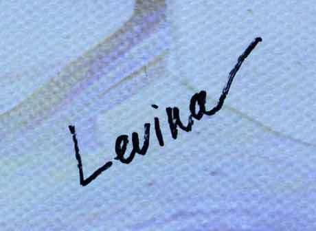 LEVINA **UNTITLED ** GICLEE ON CANVAS. Artist: Lisa Levina - Title: Untitled - Medium: Fine Art Giclee on Canvas - Edition: 45 - Signature: Hand-signed and Numbered - Image Size: Approximately 20 ½ inches x 11 ¼ inches - Framed: Unframed on Unstretched Canvas - Details: This work comes with a Certificate of Authenticity - Biography: Lisa Levina was born in 1995 in Russia, in the capital city Moscow. Lisa studied in the Serov Drawing Academy in Moscow and later in The Moscow Art and Industry Institute. - In 2019 Lisa immigrated to Israel and now lives near the sea in Bat-Yam, a small city near Tel Aviv. - Lisa enjoys staying on the beach for it is a huge influence on her naïve art. - Warranty: Item GUARANTEED to be as described
