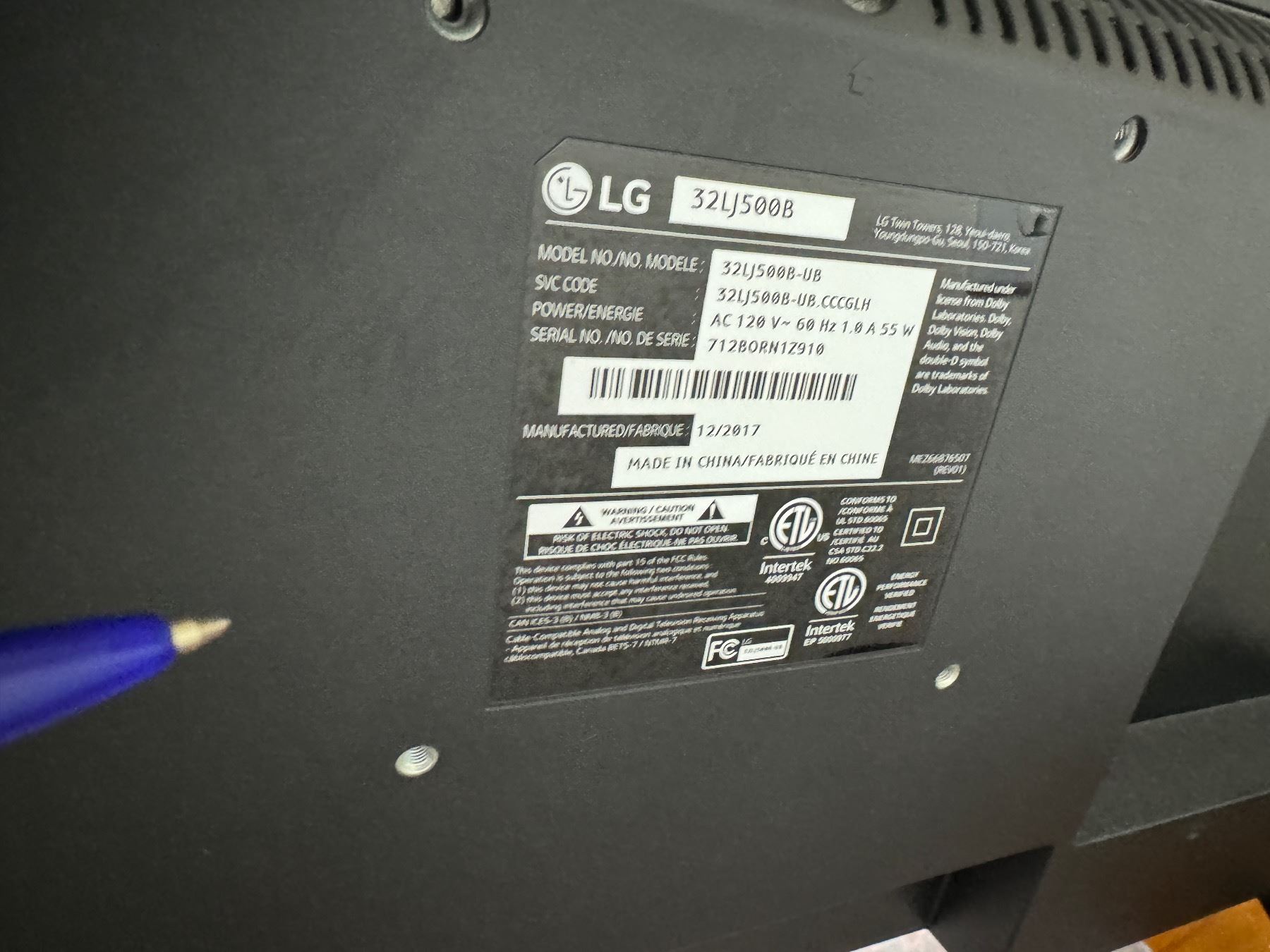 LG 32" tv with remote