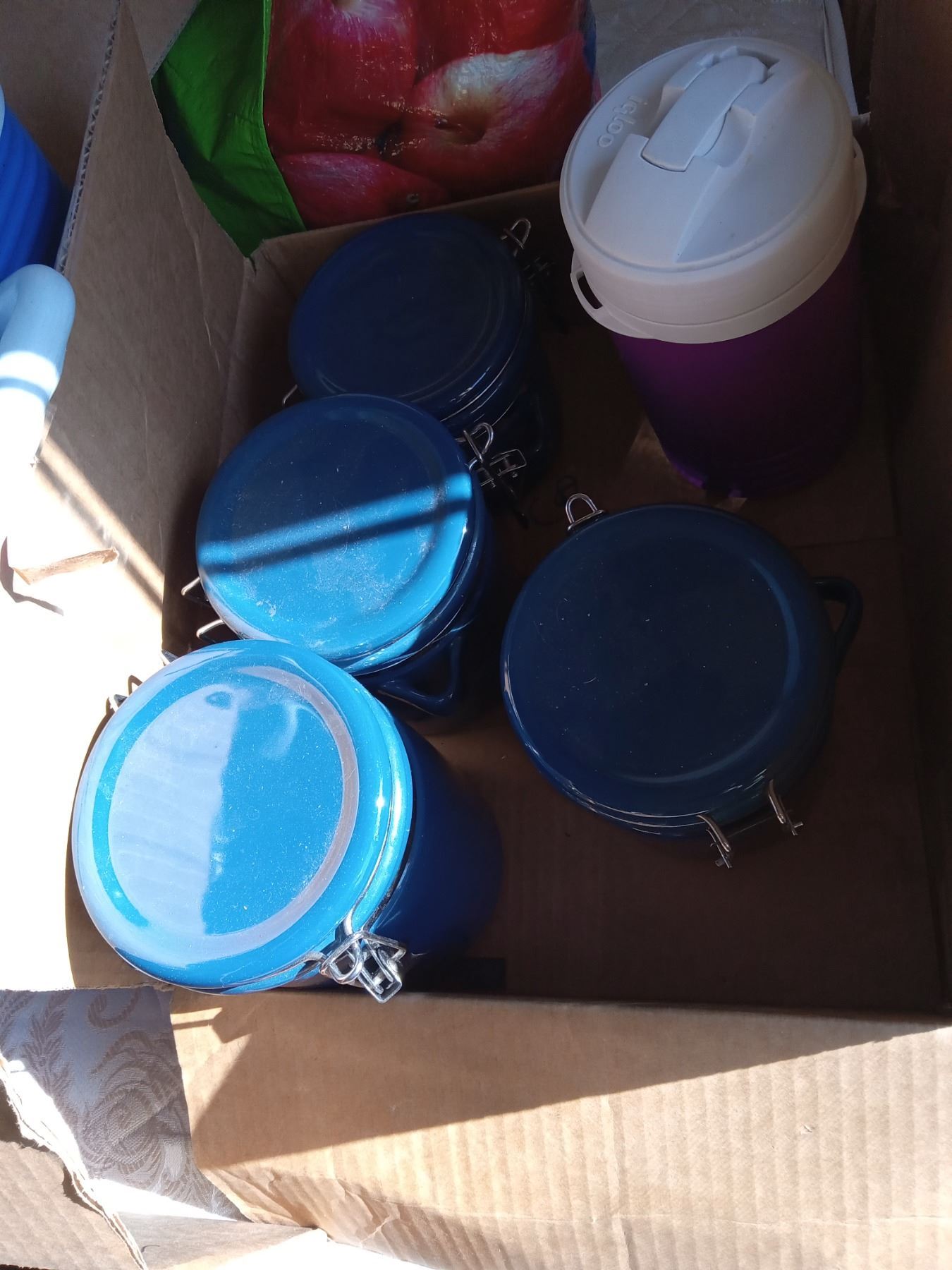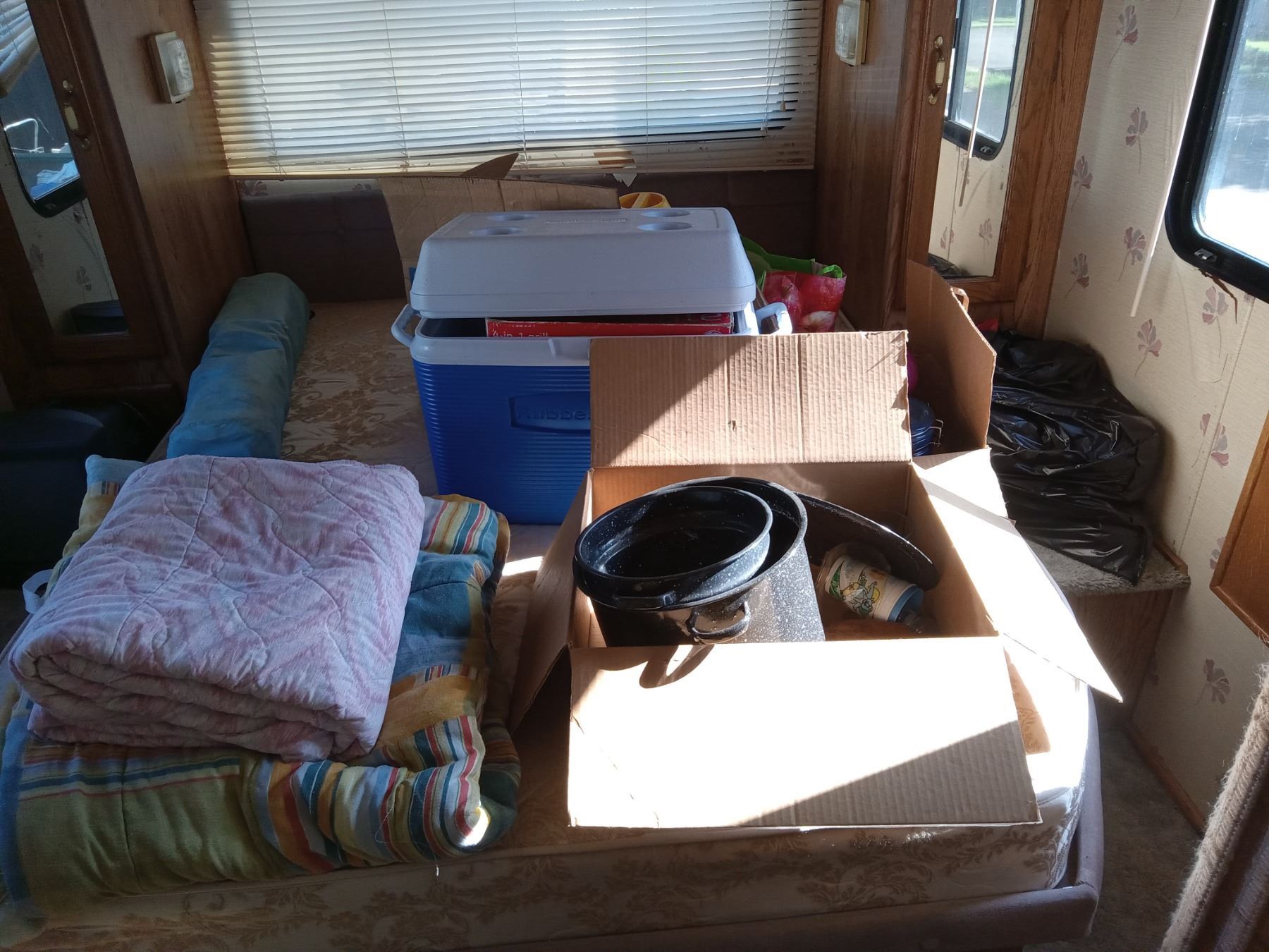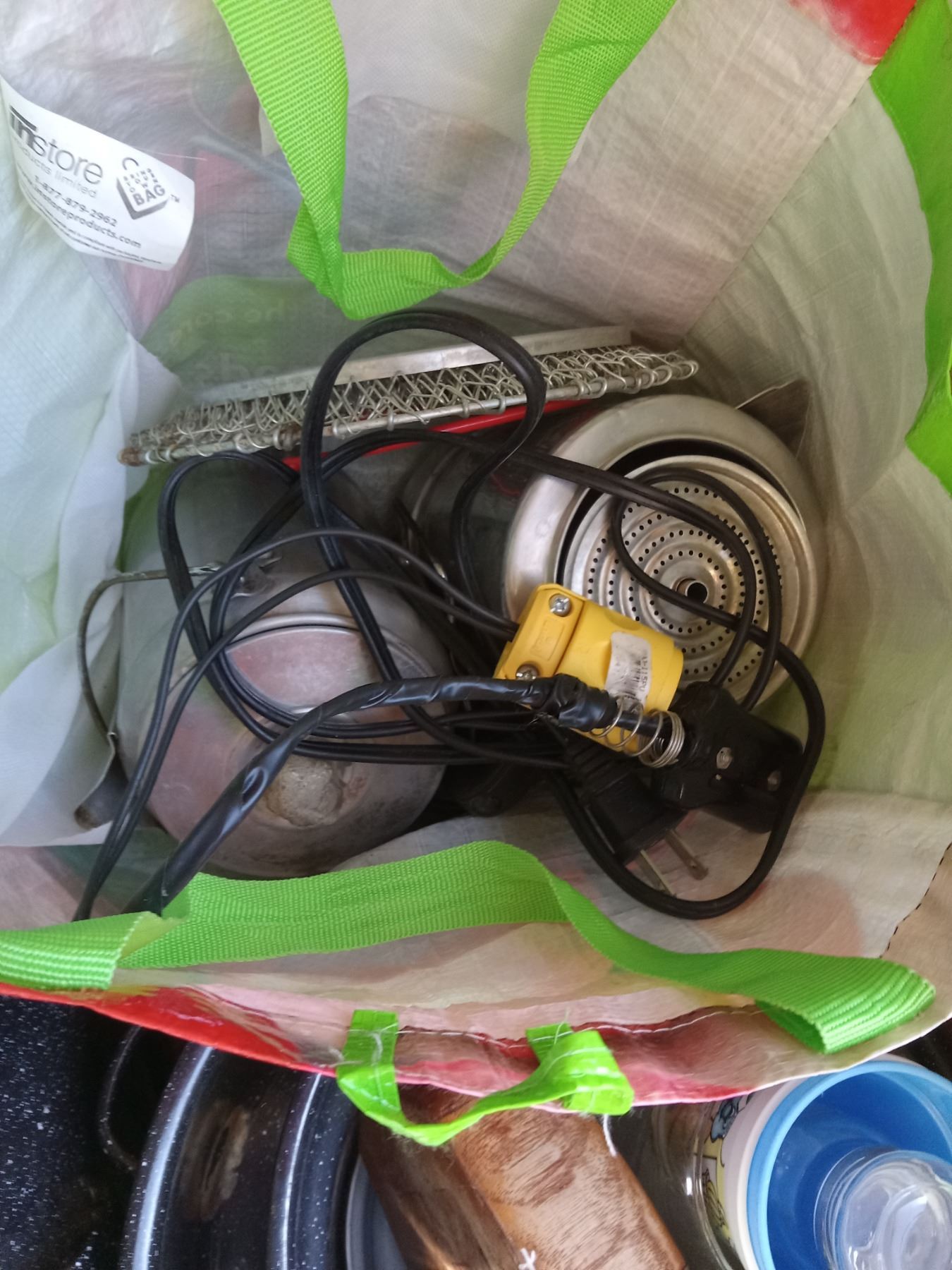 LG. ASSORTED VARIETY of CAMPING NEEDS, EQUIPMENT & SUPPLIES, COFFEE PERKS, ETC. LINENS, CAMP CHAIR, BLACK BAG OF STUFFIES -COLLECTIBLE*(SEE PHOTOS)