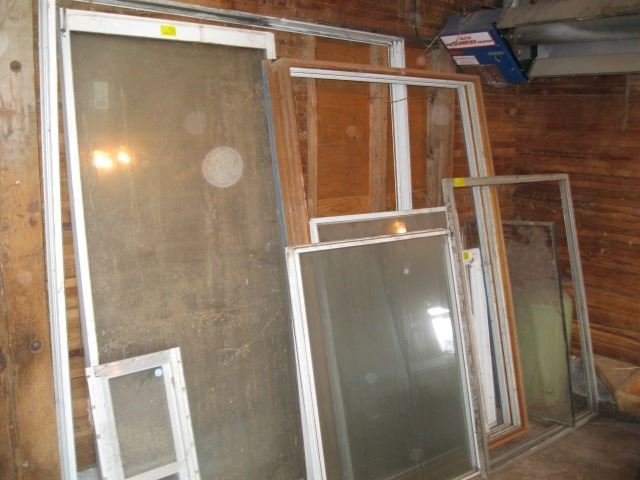 LG. LOT OF ALUMINUM FRAMED WINDOWS & SLIDING PATIO DOOR
