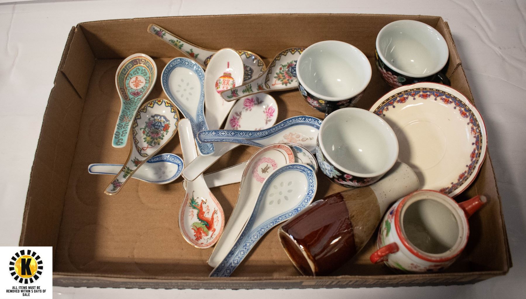 HAND PAINTED PORCELAIN, TEA CUPS, ANTIQUE MINI TEA POT